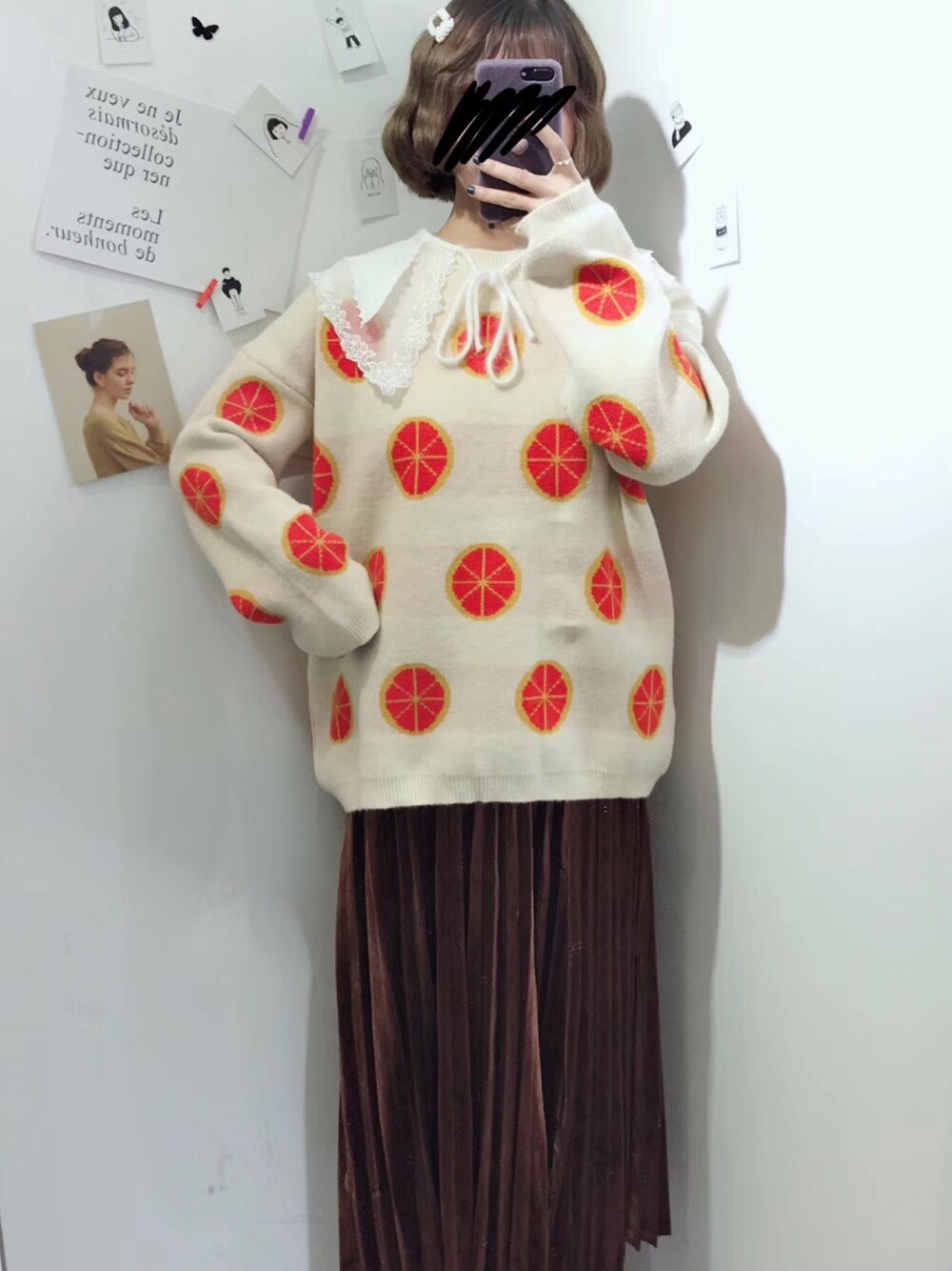 オレンジ系のニット/セーターを着用したメンズの春コーディネートの1枚目の写真