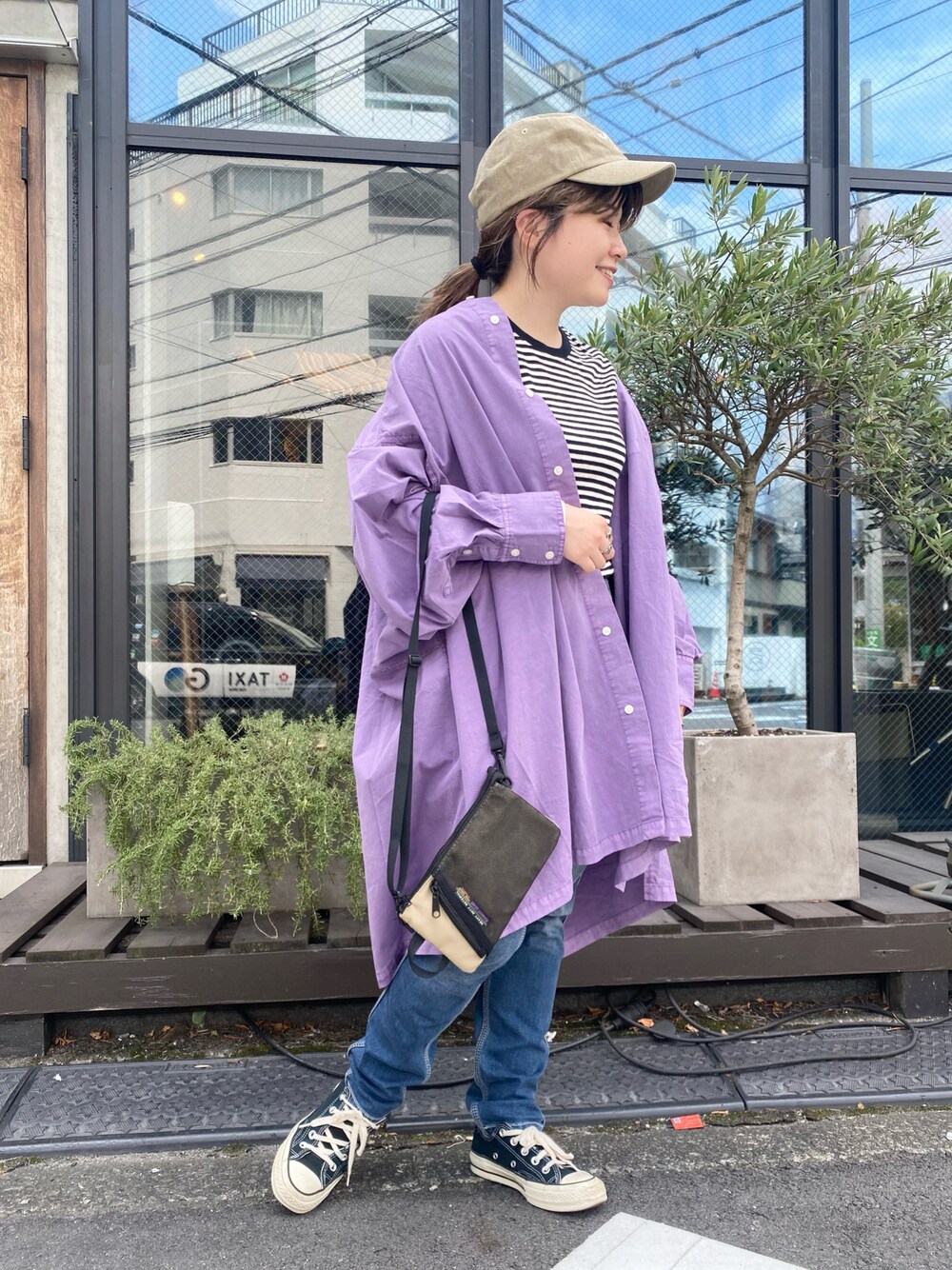 iori(EC事業部)のTシャツ/カットソー「ショートスラブフライス ボーダー 長袖 クルーネック」を使ったコーディネート