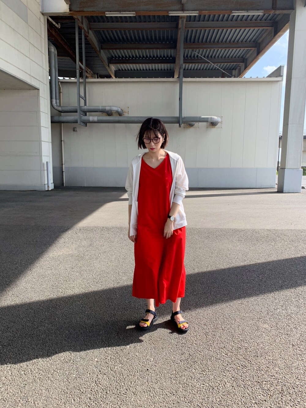 myonのワンピース「マーセライズコットンAラインロングワンピース(ノースリーブ)」を使ったコーディネート