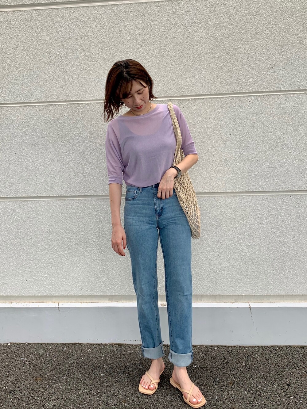 閲覧&いいねありがとうございます😊 ストレートジーンズ脚長効果抜群👖 シアーセーターと合わせれば、見た目も着ても涼しさコーデ♡