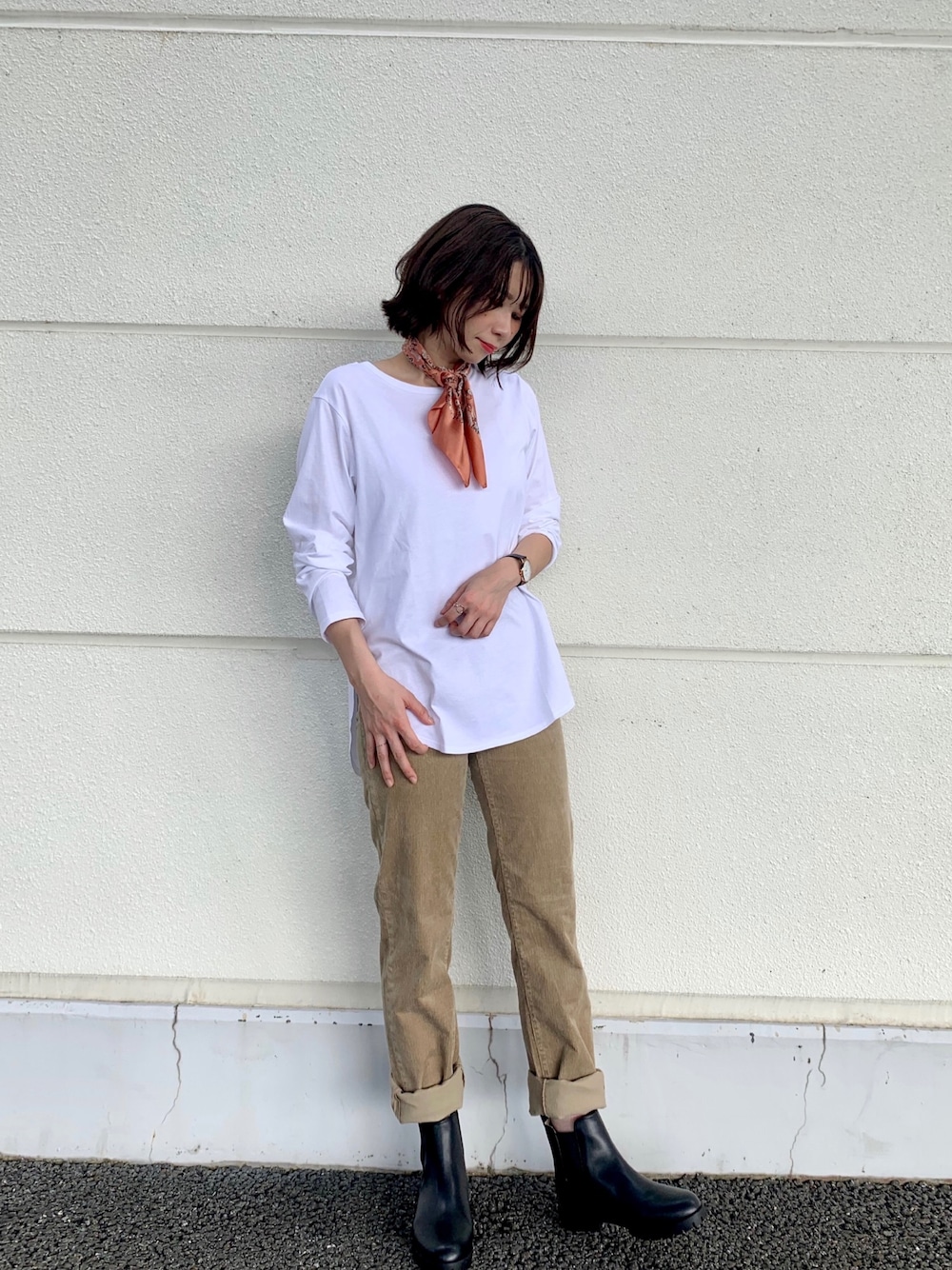 お久しぶりです☺︎閲覧&いいねありがとうございます! のびのび伸縮性のあるコーデュロイパンツにお気に入りの薄手カットソー♪ いい感じの楽さです😊