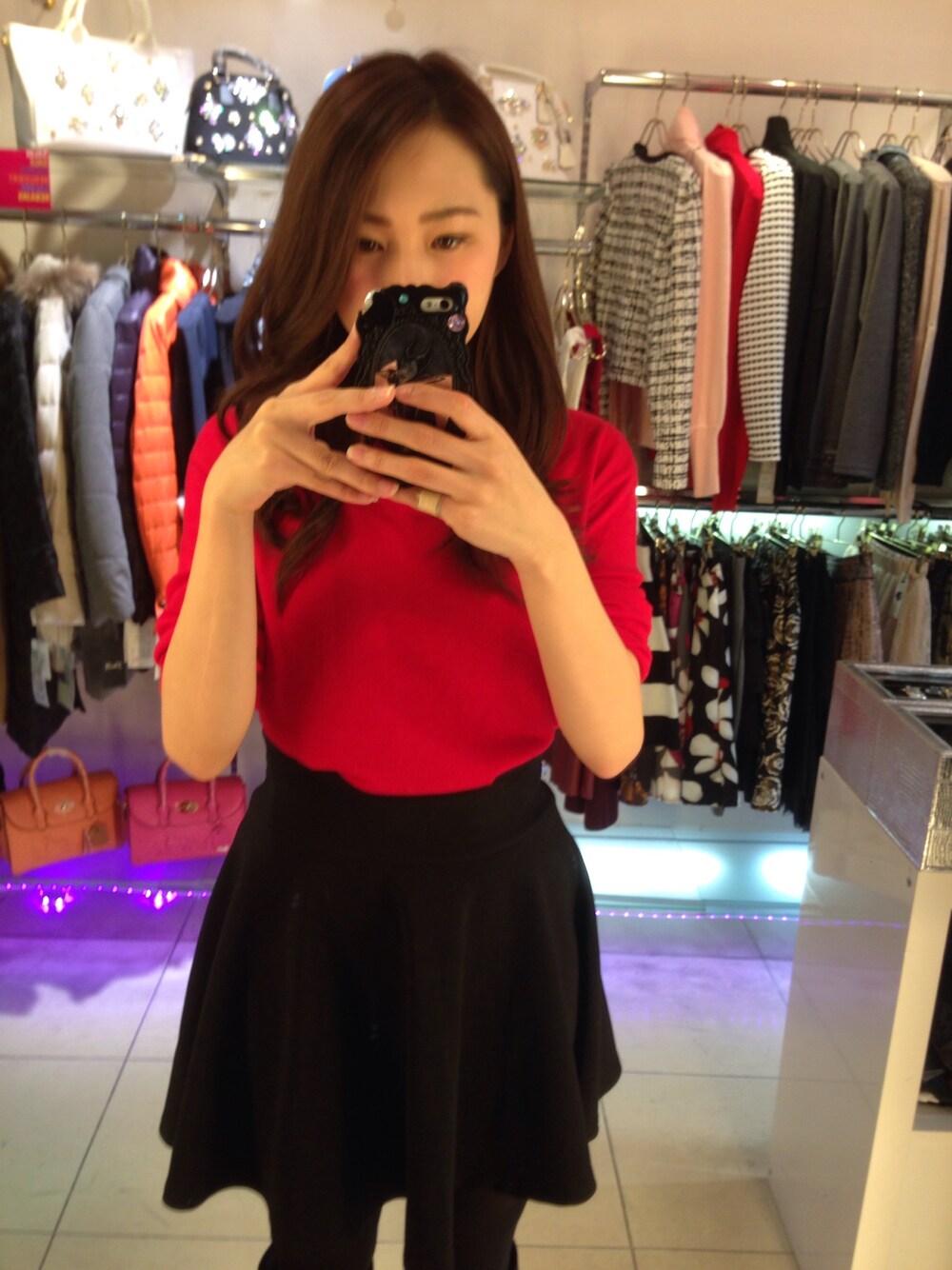 クリスマスだから赤のニット