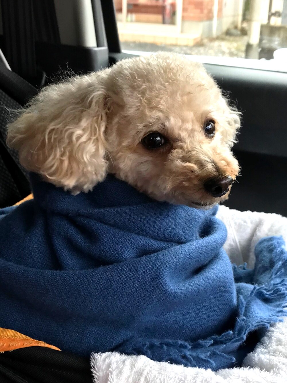 朝って寒いね❄️ ママのストールもーらいっ♡ ぬくぬく♡