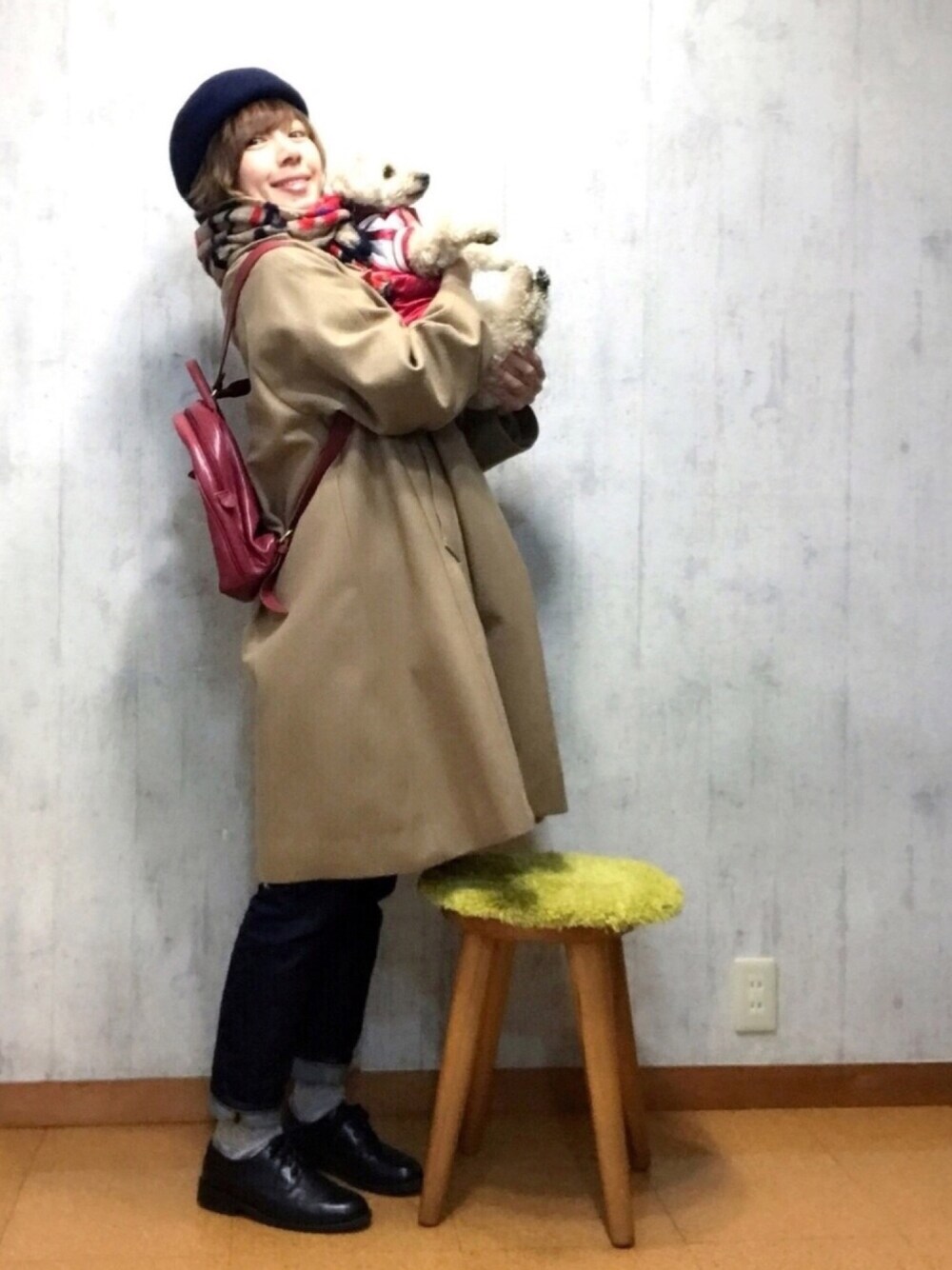 嵐の松本潤さん主演ドラマ99.9、観てますか? 松潤の着てるステンカラーコートとリュック、可愛いなぁ〜♡ メンズものに目が離せません。 そこで今日は99.9の松潤コーデ(笑) 全然違うし! とファンの方に怒られそうです(笑) 雰囲気、雰囲気、雰囲気だけ〜♡ このコートはAラインコート。 ボタンは1つでふんわり。 リュックはイルビゾンテ。2014年に発売されたもの。 ずーーっと赤の革製のリュックが欲しくて、やっと欲しいものが見つかって購入。 あまり物を入れないので、 中には財布と小ぶりのポーチのみ。 横から見るとペラッペラでビックリ(笑) あまり入れてないとこんな感じなんだぁ。 マフラーはコーデの全ての色が入ってたのでこれにしました♡ トリコロール風✨✨ 好き♡ ブリティッシュな雰囲気にしたのに、チャコはアメカジ(笑)