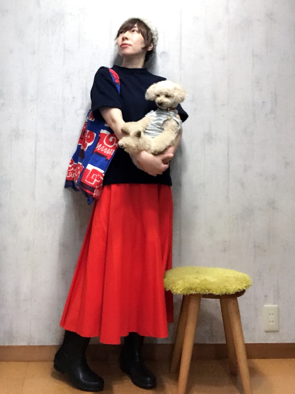 こんばんは! 東京は夕方から土砂降りでした! 今日はレインブーツで出勤。 朝はこのまま降らなかったら恥ずかしい、、と思ってましたが、 予報当たってよかった(笑) たまに履くとなんだかテンション上がるレインブーツ。 水たまりにワザと入りたくなるし。 雨の日は無敵っ!! コーデは雨の日は派手目なスカートが吐きたくなるので、赤いユニクロのスカート。 そして、トートバッグはまたもや雑誌の付録です。 なんの雑誌だったか記憶にないくらい、 トートバッグ目当て。 確か北欧雑貨のなんちゃらとか、、だった気がする〜! チャコもカッパがあるのですが、 あまりの雨なので移動中はリュックの中。 出たいと騒がないということは歩きたくないってことね?(笑) GWも明け、気持ちが通常モードになかなか戻りません(笑) みなさんハッピーな1日をお過ごしでしたか?🌈