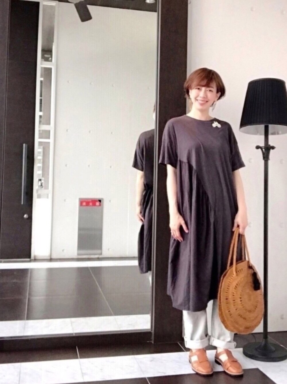 こんばんは! 朝、サロンのエントランスでドキドキしながら慣れない自撮り。 若干、半笑い😂 今日は自宅の方のマンションのお祭りなのに私1人仕事でした。 旦那にチャコを託して2人で楽しんでねと駅まで送ってもらいました。 チャコは浴衣♡ お祭りはマンション住民達でステージを作って、 出し物もマンション内のフラダンスやギターのサークルの人達が年一回発表する場になっているのです。 屋台もあって、焼きそばとか、フランクフルトとか全部マンションの住民が作るんです。 そして、お祭りの最大の目玉は抽選会。 特賞はディズニーペアチケット!! 住民達はそこだけに気合いを入れて参加しているような、いないような(笑) あ。 今、帰りの電車の中で7等が当たったと旦那から報告が入りました。 えーん💦 7等はサーティワンアイス1000円分だそうです。 それでもいいっか!✨ 当たらない年も勿論あるしね。 コーデは、リネンワンピにヒッコリーのパンツ合わせ。 サークルバッグに、グルカサンダルです。 このワンピにグルカサンダルを合わせることが今年のヘビロテ。 以前のコーデとかぶりまくりです(笑) ベレー帽はバッグの中に。 仕事前にかぶると髪型がえらいこっちゃになるので、帰りだけかぶってます。 ヘアセットが形状記憶するムースとかスプレーがあったらいいのになー!(笑) みなさん、ハッピーな週末をお過ごしくださいね🌈