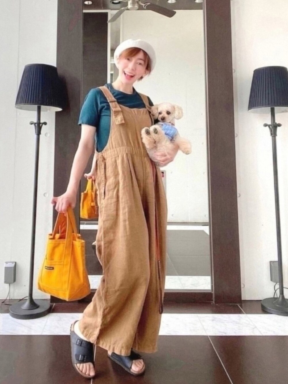 おはようございます! って、もう昼だよ。 わーい♫ 休みだ〜♫休みだ〜♫ うれし〜な〜♫ とはいいつつ、これといって何もないけど〜 今日のコーデは昨日の。 リネンの季節がやってきた✨✨ オーバーオールLOVE❤️の会✨✨ リネンのオーバーオールたくさん着れる〜♫ このコーデ、昔も同じ感じで組合わせた気がするけど、 この色の組み合わせがなんか好き! 昨日は、レンタルサロン初日。 持ち帰りのタオルが激重いっ💦💦 怪力な方だけど、重過ぎていつものカフェに置いてもらって車を横付けさせてもろたよ。 こんな時、ご近所さんの有り難さが身に染みる。。 でも、毎回甘えちゃいけないから次からはスーツケースにしよう! イケヤのバッグは行きはよいよい、帰りが怖いね。 初日から洗礼受けた気分✨ お客様は同じ家具に、同じ配置に安心したみたくて違和感なくいられたようです。 よかったぁ、、✨✨ でもね、ちょっとここのレンタルサロンの貸主さん(写真では癒し系のかわいこちゃん)とは合わないみたい。 月曜日にお会いする約束、1日に2度もドタキャンされちゃったよー! ビックリ、ビックリ! うっかり可愛いバッグ、衝動買いしちゃったじゃんっ‼️(小窓参照♡) 後日、コーデしま〜す💗