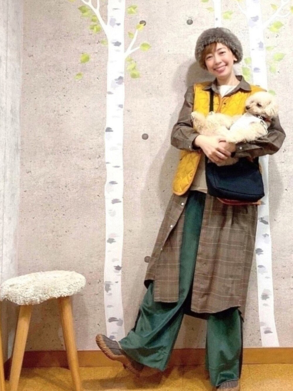 こんにちは! 寒くなってきましたね。 仕事の施術着を秋冬用に変えたいと思いつつ、未だリネンの半袖ツナギを着ています💦 ここ2、3日はカーディガンやレインジャケット羽織ったりしてしのいでます。 施術に入れば半袖じゃないと出来ないし、このままこれでいいのでは?と思えてきた今日この頃。 てことは、トンしゃんのコメントしてくれた「そのまま重ね着」が採用⁉️ 初めて読んだ方には、何を言ってるのかわからないですよね💦 気になる方は、9/18のコーデのツナギをご覧ください(笑) 重ね着繋がりで、本日は ♯秋色カラー 参加します♫ 秋色のラベンハムのベストが羽織れる季節になりました。 冬は中に着て差し色にしたい✨✨ SEROのシャツワンピも秋色チェック柄。 SEROは元々メンズのシャツメーカーで、最近レディースも作られているそう。 ステラシフォンの緑のビロードワイドパンツ。 サイドにラインが入ってて大人スポーティー。 秋冬って重ね着できるから楽しくて嬉しいなぁ♫