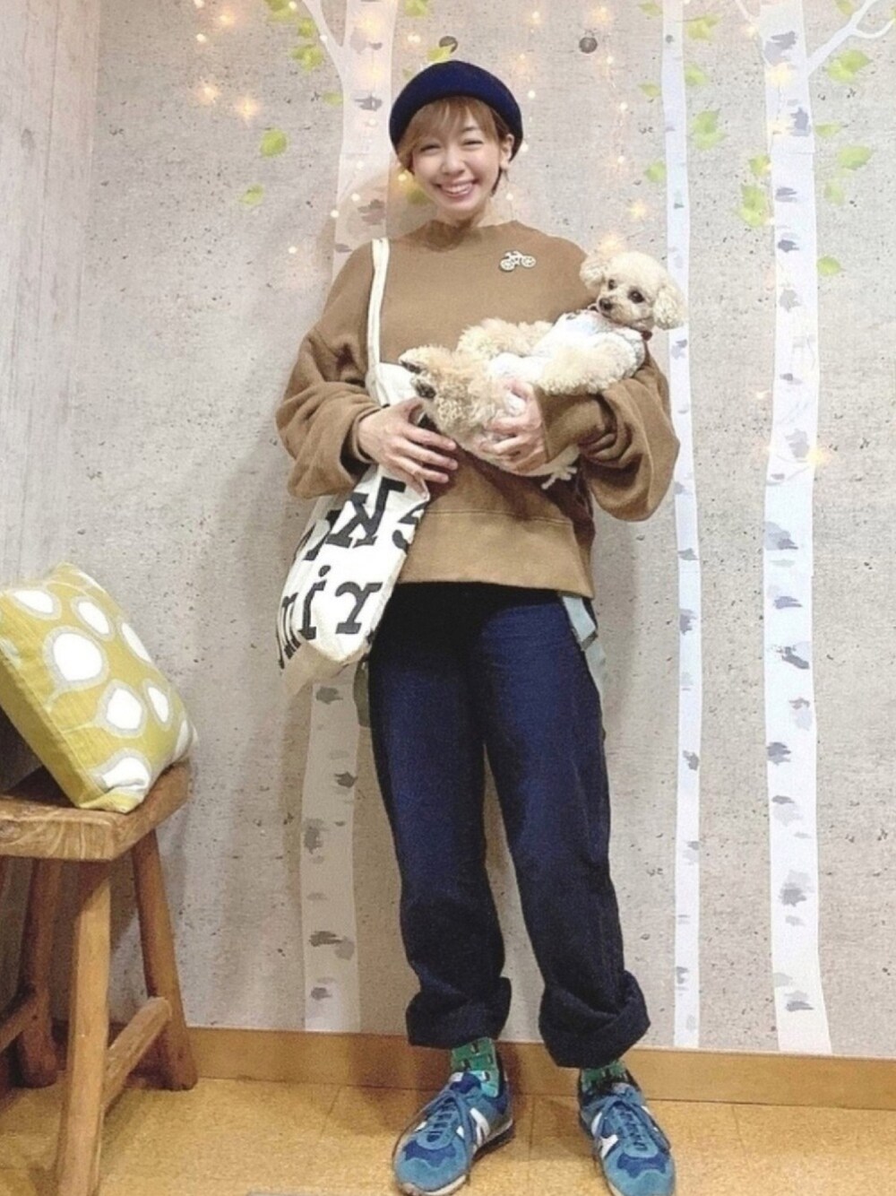 こんにちは! 🤎💙コーデ。 昨日の色味上下、逆バージョンです。 これは、ゆったんが💙🤎コーデをしていた色味をボニしゃん(✨BONITO✨さんっ)が真似っこしていて、 上下反対の🤎💙も可愛いなぁと思って、またもや真似っこの真似っこ(笑) これも色だけ一緒なので、真似っこ感が薄っ、、 ちゃんと言っとかんと、いつもの私のコーデになっちまうと思い、 マネマネ書いてます。 ボニしゃんのオシャレな🤎💙コーデは小窓にてっ✨✨ 大人のキレイめカジュアルがめっちゃ素敵✨✨ 実は、昨日のコーデ。 メガネ&マフラー&帽子は、ボニしゃんのパクリです(笑)←リンクとかコラボとか言いなさい。 ボーラーハットはないからいつものベレー帽。 あ! 昨日のコーデの説明を今日してもあれですね。 今日は、 かろうじて茶色の見えそうな巨神兵スウェットに、 青、、というか紺のサスペンダー付きパンツ。 ここも、青が微妙なので、 水色の靴下、青いスニーカーでダメ押しです。 今回、色でコーデして分かったことは、 私のクローゼットは偏ってるってことです😂🤣 円グラフにしたら、めっちゃイビツになっちゃうんだろうなぁ、、と、妄想しました。