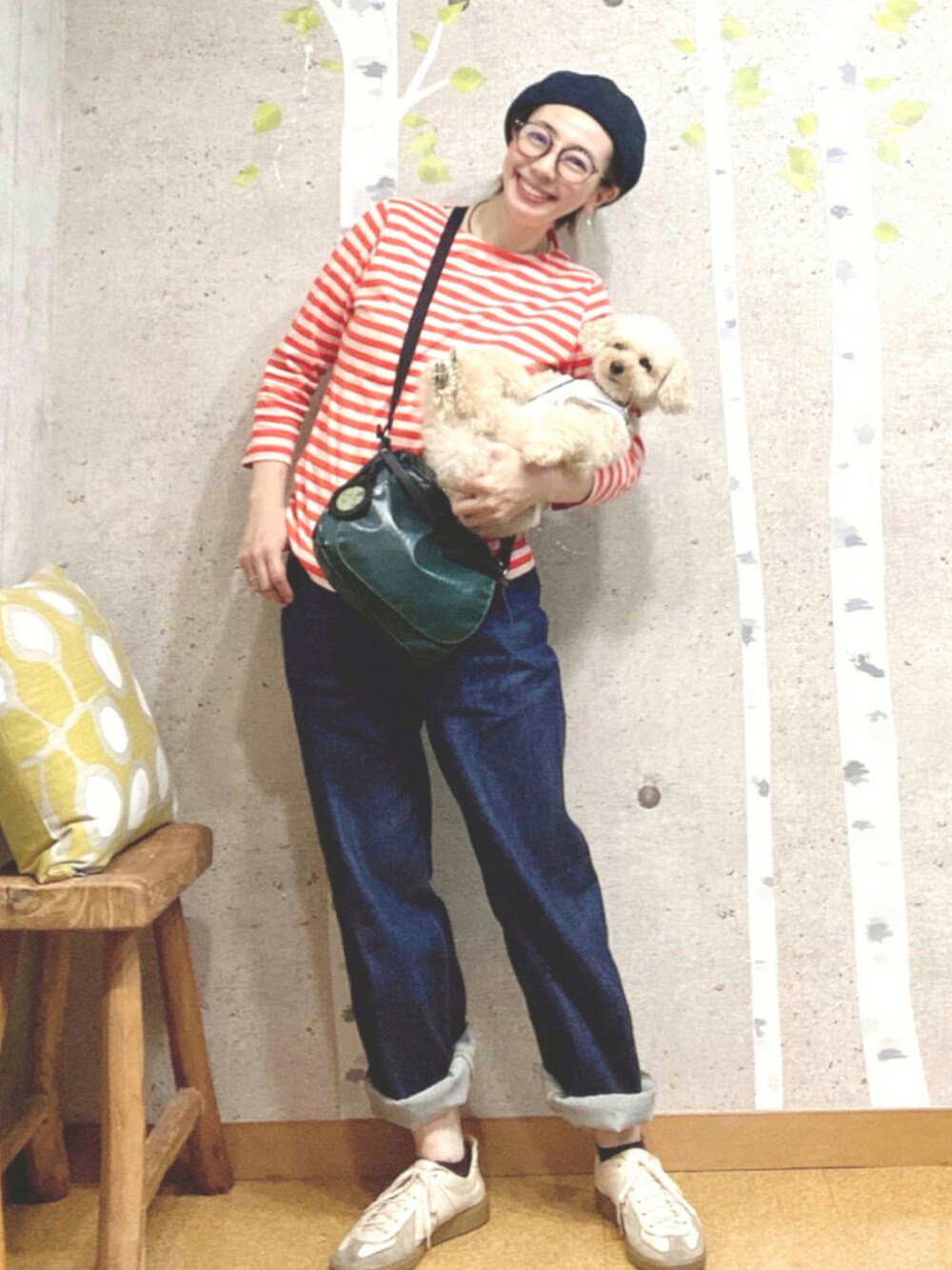 おはようございます! まだまだ大雨が続いてますね。。 みなさんの住む場所が無事でありますように。 くれぐれもお気をつけくださいね。 休日のときのコーデです♪ 半袖だと肌寒くて、マリメッコのイルマ。 オレンジの7分袖ボーダーです。 シンゾーンのデニム。 ボーダーにデニムってめっちゃ落ち着く💗 靴とバッグは雨に濡れてもへっちゃらなヤツ。 ジャックゴムのグリーンショルダーバッグ。 ジャックゴムといえば!このLightシリーズ! ナイロンにポリウレタンをコーティングしたオリジナル生地で作られた軽くて丈夫なバッグ。 温度や湿度にも強いそうです。 フランスらしい色合いも素敵です! リプロダクション オブ ファウンドのスニーカーです。 別名、ジャーマントレーナー。 ドイツの軍物です。 トレーナーの時履かれていたそうで、雨にも強い! この靴でザブザブ歩いても濡れません。 スゴイ機能✨✨ 雨対応な小物たち。 チャコのお散歩には欠かせません。 日曜日はパーソナルヨガ🧘♀️へ行きました。 先週の帰り際、UVスプレーを吹きかけて帰ろうとしたら、 「それ、なあに?」と、聞かれたので UVだと答えました。 先生は、UVにスプレータイプがあることを知らなかったそう。 ベランダに洗濯物を干すだけで日焼けしちゃうけど、 毎回塗るのが面倒だからスプレーだといいわね‼️と仰ってたので、 連日暑い日が続いていたので、そのままそのスプレーを差し上げました。 そしたら日曜日、ヨガ終わりに手作りのスイーツをご馳走してくださいました✨✨(小窓参照) UVスプレーがアクアパラソルっていう商品なんですけど、 その名前に因んで、パラソル風ココナッツミルク❣️ ココナッツミルクの上に、キウイとオレンジでパラソル💚🧡⛱みたいに乗ってて、 めっちゃ可愛い〜✨✨ サラっと作れるなんてすごーい🥰✨ 何よりそのお気持ちがありがたかったです❣️ 先生と美味しくいただきました✨✨