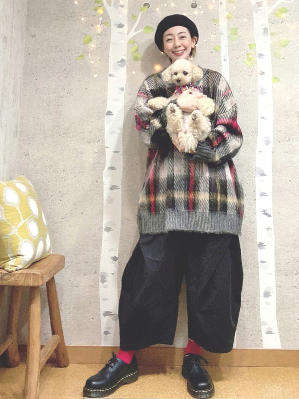 こんばんは! 今日から秋冬ベレー帽に衣替え。 ぱっと見、わからんし! でも、あれよ! 生地がね、フェルトなんです。 フェルト生地〜✨ ホッとする〜♡ 全然関係ない話なんですけど、 今日、駅までお客さんをお迎えに行って乗せて商店街を突っ切り大通りに出る途中、 フロントガラスにカマキリが留まりました。 わりと大きめ? 15センチくらい。 運転席から見ると、カマキリのお腹を見てる状態なんですけど、 なんか、こわっ‼️ 大通りに出たら、このカマキリ 風に吹き飛ばされて、車に引かれて絶対死ぬ‼️ 大通りに出る前になんとかせねばとフロントガラスをコンコン叩いてみたけど、 全然反応なし。 信号変わる前になんとか飛んでくれ〜‼️💦と、 私も、お客さんも焦る、焦る💦 すると、 私達の様子を外から見ていた見知らぬおばあちゃんが うふふと笑いながら、 カマキリをむんずと手掴みして、おばあちゃんちのお家のお庭に放してくれました✨✨ おお〜〜✨✨ 私達は拍手👏👏&ありがとうと何度もお礼のお辞儀をしました。 信号が青になるまでの短い時間でしたが、 ドキドキとホッコリを同時に味わった出来事でした💗 コーデはガッツリ秋冬。 先日、GOODDEALにてGETした、F/CEのチェック柄ゆるゆるニット。 ダボっとしてるけど、着ると肩からのラインがスッキリキレイめ。 デザイナーさんが自分の肩がコンプレックスで、肩のラインが綺麗になるデザインを作るのが得意なんだそうです。 こういう小ネタを知ることがお店に行く醍醐味。 色んなことを知るとお洋服に愛着が増していきます。 そのデザイナーさんはボトムスもダボっとしたものと合わせることが多いと聞いたので、 私もフラボアのダボっとしたパンツを合わせてみました。 あぁ、早くニットが着たいなぁ。