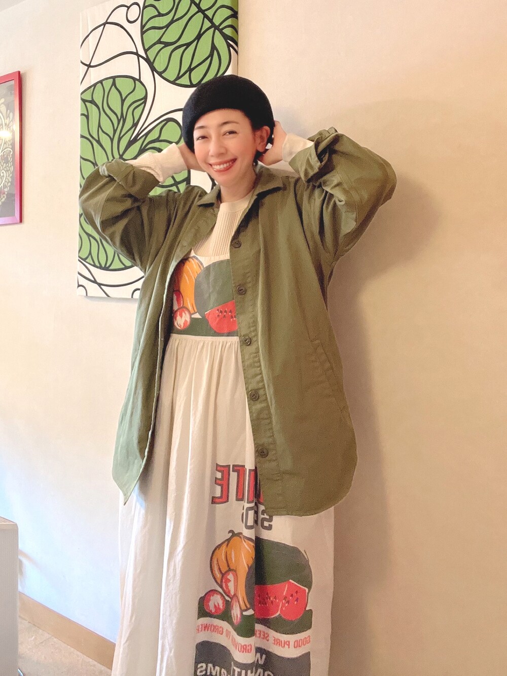 こんばんは! 「おじさんが、すごく似合うと言ったから、3月12日は野菜袋記念日。」 毎日、継続して朝ドラ『カムカムエブリバディ』にどっぷりハマっています。 4/9が最終回なんですが、絶対ロスになる〜 現在3人目のヒロイン、川栄李奈ちゃんの弟役の桃太郎くんが 初恋の人から借りた本、俵万智の『サラダ記念日』にあやかって、 日々の出来事を〜記念日♫と楽しそうに心の中で呟いているのが可愛くて。 ドラマの中で良い味を出しています。 些細なことでも、うれしいことや良かったことを見つけていくことって、 大切だな〜なんて思ったりします。 ということで、コーデは、 野菜袋をリメイクして作ったジャンパースカート記念日です。←もういいから。 本当の野菜袋なんだそうです。 なので、とてもしっかりした生地感です。 絵柄がポップで可愛い〜🎃🍉🍅♫ 自由が丘のショップFURALIのです。 中はUNIQLOのワッフル生地のロンT。 さっぱり見えないけど、シンゾーンのデニムにmananaの紫の靴下履いてます。 みなさんも素敵な週末を! いっぱい記念日が作れますように✨