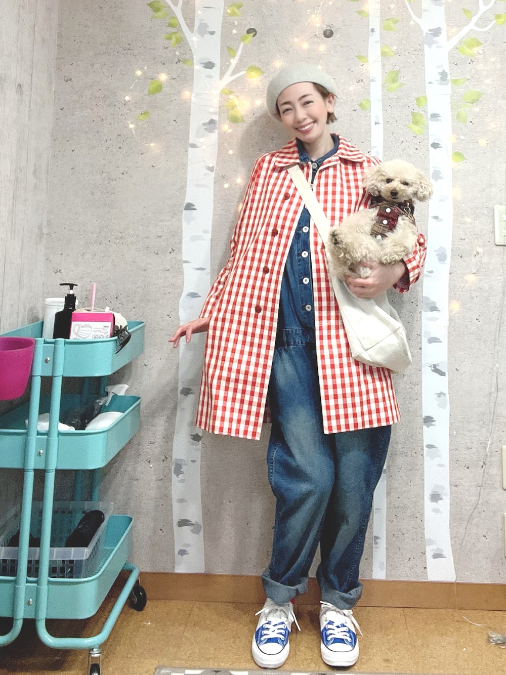 こんばんは! 念願の赤いギンガムチェックのコートでコーデしました。 数ヶ月前、お友達のえみちゃんから、 「雑誌FUDGEの表紙にゆきちゃんぽいコーデがあった‼️」と、教えてもらいました。 その後、コンビニでFUDGEを目撃👀←買わんのかい💦 赤いギンガムチェックのロングコートにベレー帽を被った外国人の女性でした。 他にも、バーっと何人か並んでたけど、 1番先に目に飛び込んできました✨✨ それくらい印象的で可愛いなー❤️と思いました✨ その後、えみちゃんに言うとそのギンガムの人で間違いありませんでした❤️ いつかこんなコーデしたい❤️ いつか見せてね❤️ と、やり取りしたものの、 赤いギンガムチェック。しかもコートなんて持ってもなくて。 それからちょこちょこ探すようになりました。 赤いギンガムチェックって 探せば探すほど感じたのが、 子供かワンコのお洋服しかないっ‼️🤣 大人は黙って黒ギンガム‼️🖤🤍なのか⁉️ 大人は大人らしくなんでしょうけど、、 いやぁ‼️ほんとに無い‼️ 無い‼️ 無い‼️ 無い‼️ 恋じゃナイ‼️(古っ) 探していくうちに薄れゆく記憶。。 ベレー帽と赤ギンガムコートだけは覚えてるけど、 もはや、どんなコーデをしてたかもあやふやに。 せめてもう少しちゃんと見とけばよかった。。(遠い目。)←買いなさいよ‼️ そんな時、お友達のまゆちゃんがブルーのギンガムコートを着ていたのを見て、 実は赤ギンガムを探しててね〜ってコメントしたら、 あるよ‼️とあっさり教えてくれました🤣🤣 まさかのすんなりGET✨✨ ありがと〜😂😂まゆちゃん❤️🤍❤️ そして、えみちゃんとのやり取りを話してコーデがあやふやだと話すと、 なんと‼️ ズバリ‼️ そのコーデの写真を送ってくれるではありませんか‼️(きっと見たいよね⁉️小窓参照) 神なの⁉️✨✨ まゆちゃんはちゃんと雑誌を買っていて、 しかもこのコーデ、すごく好きだったから 青のギンガムチェックコートをGETしていたと知りました✨✨ そんなところも同じだったとは、感動でした✨✨ という道のりで、 えみちゃん❤️ やっと赤ギンガムコート着たよっ❤️🤍 結局写真とは違うコーデにしちゃったけど、 中はデニムのつなぎです。 久しぶりにフランス🇫🇷コンバース✨ 赤い靴下を履いたら、コンバースの赤と地続きみたいになってます🤣😂🤣