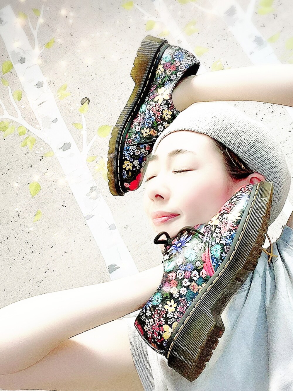 こんばんは! 滑り込み! おてて靴フェスに参加させてくださいー!! 改めて、ゆっけさんの靴芸にビビりました!! 足のように撮影するのって、すごく難しいっ💦 どうやっても胴体やら、本当の足やら、下手したら顔まで入る始末。 とうとう地面につけて撮影することはできまへんでした!!🤣 そして、毛穴という毛穴を光の力で飛ばしまくった靴ダンサー🕺的な芸🤣 鼻の穴は光の力では、消せませんでしたぁ🤣 3枚目は、本日のコーデ。 靴、違うの履いてるやーん🤣 肝心な靴ですが、 昨年の誕生日に旦那にプレゼントしてもらった花柄のマーチンです🌸🌼 花柄は派手過ぎて使いにくいのかと思いきや、色んなコーデに合わせやすくて、 無地よりも使いやすいです✨✨ 旦那さまぁ、今年もお靴が欲しいでーす✨✨(まだ言ってませんが🤣)