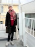 さっき起きました。 昼やんっ!!😂🤣😂 一昨日のコーデ。 i am iのボーイフレンドニットを着て出勤していたら、 だるちゃんから連絡が💗 ガールフレンドニットが届いたよー💗と、 またもやリアルでリンクしちゃいました🫶 またおデートコーデができるね💗と、 束の間の癒しを頂きました💗 ニットに合わせてパラスパレスのストールをぐるぐる巻き! チャコにも移動中の車でぐるぐる巻き! ストールの角に赤と青のビーズがちょこっと付いてるところも好き💗 購入して軽く5年くらいは経ってますが、 飽きのこないデザインでお気に入り。 コートは、くーたろさんが着ていたビームスボーイとバブアーのコラボコートの旧型版。 今年はロング丈で可愛いのですが、お財布と相談してusedにしました。 バブアーのビデイルを持っているのですが、 丈が違うと全く別物!! しかも、このコートはバブアー特有のオイル加工もなく、裏生地がない。 別売りでファーのライナーがあったのかと納得。 それでも普通のステンカラーコートみたいなものより厚みと張りがあって暖かい! デザインはAラインになってて、可愛い💗💗💗