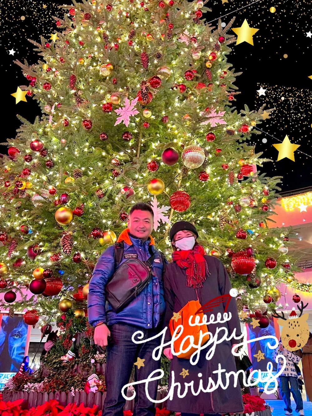 メリークリスマス🎄✨ こちらは先週の写真。 我が家は恒例の夫婦別々クリスマス🎄 旦那さんはスキー⛷ 私は実家🏠 なので、先週は旦那の罪滅ぼしクリスマスが行われました🤣 近所でイタリアンを食べ、イクスピアリのイルミネーションを見てきました✨ イクスピアリのツリーは下の方まで可愛い💗 小人達がたくさん居て、ちょっとした森みたい。(大窓参照) 隣にいた知らない子が飾りつけのボールをキラキラした目で触っていたのが可愛くてつい写真に収めてしまいました✨(大窓参照。でも顔は写ってません。) たまたまディズニーランドの花火が上がって建物越しでしたが、 綺麗に見えました✨✨(小窓参照) そんな罪滅ぼしクリスマスをしてくれた旦那。 今、吹雪の中ゲレンデで滑ってます笑 別の日には、GOODDEAL(ZOZOにも入ってるセレクトショップです。)の、 ホーリーと、ホーリーの部長と私で、ランチをしに行きました✨(小窓参照) 部長のおごりで🤣 エッグスシングスのエッグベネディクト🥚を食べました💗(小窓参照) なんでここに私が入ってるんだ⁉️って感じなんですが、 GOODDEALに行き出して10年来の付き合いになるんですよね。 その頃の初期メンバーが、 ホーリーや部長だったりします。 部長は現在、ショップには立っておらず、 本社勤務なのでもう会えなくなって数年ぶり。 今回は久しぶりにお会いできて、 GOODDEALでの懐かしい話に盛り上がりました✨ ちょっとしたクリスマス気分でした🎄✨ クリスマスといえば、 タッキーサンタからチャコにあくびちゃんTシャツが届きました✨ 本家、あくびちゃんと色違い💛🖤 あくびちゃんとコラ画作りました✨✨(大窓参照) そして、そんなクリスマス気分を経て、 本日クリスマス🎄✨ 里帰り前に、レバニラスウェットが到着したのでレバニラスウェットを持って 本日コーデ。 実家の玄関前で撮影。(大窓参照) 注文間違えて、大文字で発注してしまい、 いつもの柔らかい書体ではなく、 カクカクしたかっこいいLVNRの文字‼️ めちゃくちゃカクカクしてる‼️ 何故、間違ったかというと 大文字、小文字と書いてあったのですが、 書体ではなく、 文字自体が大きいバージョンと小さいバージョンと分けられているんです。 だから、そっちの方かと思ったんですよねー💦 もー、見た瞬間、 やってもーた感が😭😭😭 これ、どっちの意味なんだろう??とは思ったんだから、 面倒でもお問合せするんだったなー。 今年最後の教訓でした🤣😂🤣