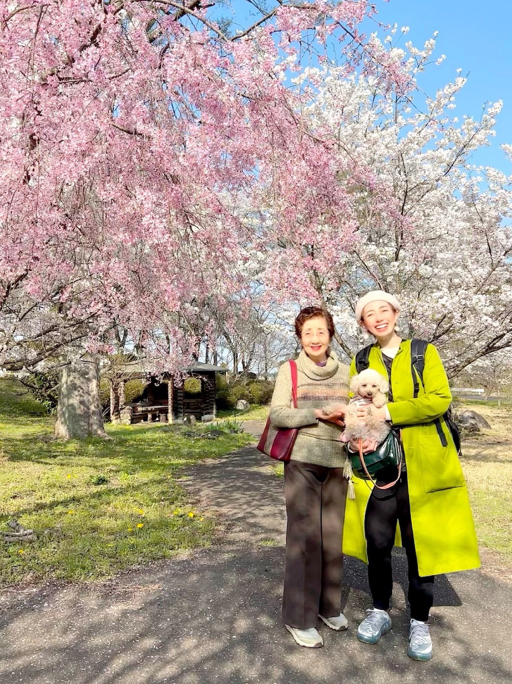おはようございます! 絶賛里帰り中。 今日が最終日。 昨日は家族で桜を見にあちこちへ。 近所なのに家族全員初めて出掛けた公園の桜がとても綺麗でした🌸 人がいないところでチャコを自由に。 のびのびと歩く姿がすごくうれしそうでした💗 コーデは、 パラスパレスのグリーンのスプリングコートに、 ハルちゃんから頂いたお揃いピアス。 中は実はかなり部屋着😂💦 ユニクロのワッフルクルーネックTに、 ユニクロの黒のスウェット。 NANGAの半袖インナーダウン。 ポケットにダウンをまるっと収納できて便利。 寒い日にバッグに入れておけば凍えることもない! 靴は、grounds。 実家は自宅より気温が低くて、着るもの1枚違うのに、 春めいた洋服ばかり持ってきてしまい失敗しました😂 インナーダウン様様でした✨✨ 昼間はお花見になったので、夜に両親施術。 背中から首まで念入りに1人2時間、2人ぶっ通しで4時間かかりました💦 楽になったー💗って喜んでもらえると疲れも吹っ飛びます✨ 今日こそ大掃除だー‼️