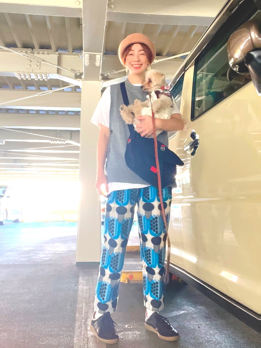 おそようございます! モヘアニット着てたと思えば、半袖🤣 昨日は、日中はこれくらいがちょうど良い感じでした。 朝晩はだいぶ気温が下がるので上着は必須。 コーデは、 タッキー、全く見えなくてごめんね💦 ズンチャコタッキーTシャツに、 ベストにもTシャツと同じ、ズンチャコタッキーの缶バッジ❤️ 青い柄(花柄か野菜柄、ちょっと不明)のプープレのパンツ。 お友達のやすよちゃんがコーデしているのを見て、 かわいいなぁと思っていたら1年前くらいに自由が丘にある古着屋さんにて発見! 何故、1年寝かせてたかと言うと、 生地感が非常に難しいのです。 真冬だと寒いし、秋の涼しい時期くらいがちょうど良い感じなので、 一気に寒くなると着られない。。 中にたくさん履けばいけるけど、何となく重ね履きが苦手なのです💦 というわけで、ピンポイントに今履くしかない‼️とやっと登場😂 帽子も涼しくなってきたので、カオリノモリのトーク帽。 年中無休で付けているハルちゃんから頂いたピアス✨✨ このピアスはほんと何にでも合うから、耳と一体化しています🤣 昨日の夕方に実家に帰省。 昨夜はお父さんを施術!! 今夜はお母さんを施術!! 毎月のルーティンです。 2人は顔はやらなくていいと頑なに断るので、 背中、デコルテ、首を2時間かけてほぐすのですが、 前回は母が同窓会に行くというので、 お顔の施術も行いました✨ お友達から若返った⁉️とチラホラ言われたらしく、 これからはお顔も含めてやって欲しいと言われました✨ いくつになっても、綺麗でいたいと思う気持ちが嬉しいし、 いくつになっても綺麗でいて欲しいです💗 今から家族で日光まで紅葉を見に行ってきまーす🍁✨