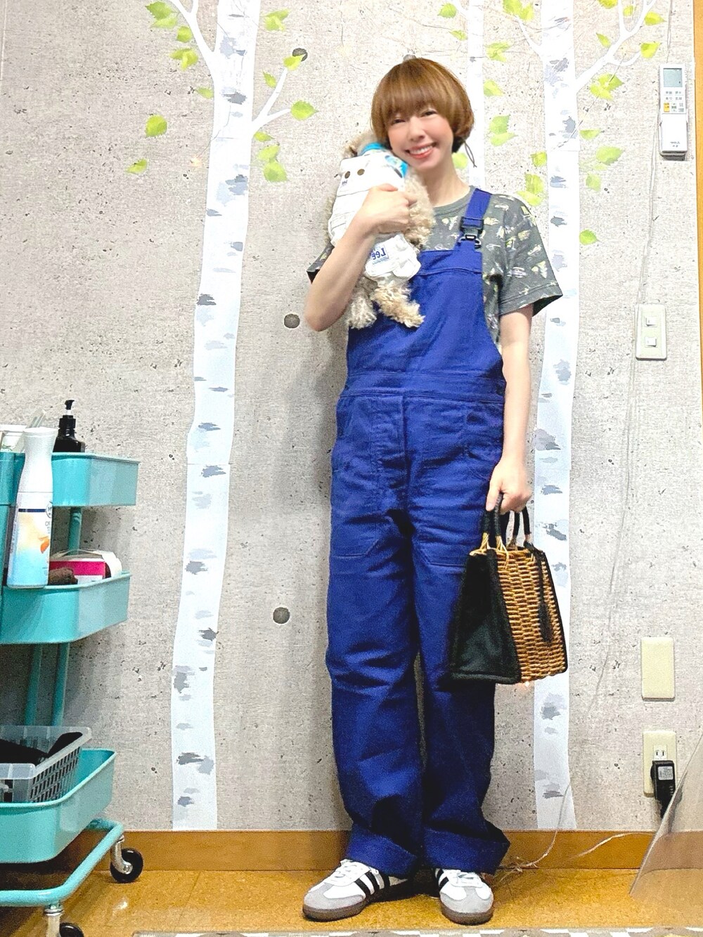おはようございます! 髪が伸びました。 今日、美容室に行ってきまーす! こちらは昨日コーデ。 半袖でも過ごせた暖かい1日。 オーバーオール、LOVE💙 前々回の投稿で黒のワンピースみたいな作業服と同じブランド。 LE LABOUREUR (ラブルール)、 フランス最古のワークブランドです。 フランスの国旗の青で使われていたブライトブルーが鮮やかでお気に入り。 数年前、マクロン大統領がフランス国旗のブルーをネイビーブルーに変更したそうで、 もはやブライトブルーはフランスカラーではなくなってしまいました。 ネイビーも好きだからいいんだけどね。 チャコもLeeのオバオルでリンクコーデ✨ 気の早い半袖は、ビームスボーイのキャンプ柄カットソー。 セットアップで購入しましたが、セトアにするとガッツリパジャマです🤣 oddsのカゴバッグは、カゴだけでなく、革や生地と混合で作られているので、 夏だけでなく持てるから使い勝手ヨシコさん✨ oddsのベレー帽も形が良くて最近ハマってます♡ アディダスのサンバは今年買ってよかったNo. 1🥇✨(4月現在🤣) 履きやすい、合わせやすい、かわいい!! 今日もハッピーな1日をお過ごしくださいね🌈