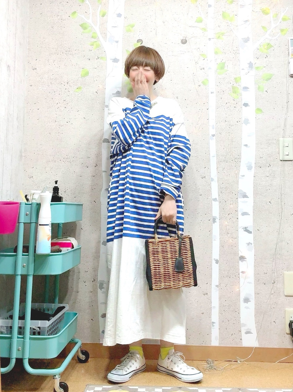 chaco♪のかごバッグを使ったコーディネート