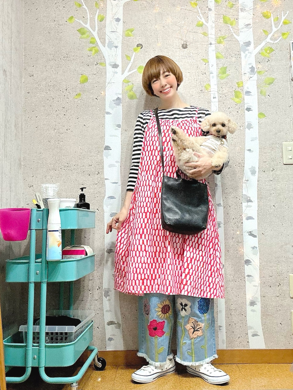 おはようございます! UNIQLO×marimekkoのkids。 キャミワンピースコーデです。 Asemaというテキスタイルなのですが、和名は「駅」です。 駅は線路で繋がってるので、ボーダーにして、 線路の傍には花畑がある。 なーんて、感じでコーデしました。 え? ガチャガチャしてる? 見慣れてくると大丈夫ですよ?笑 旦那には「派手だねぇ、ワンピース要らなくない?」と言われました🤣 ワンピースをメインにコーデしたのに⁉️🤣 まじかー🤣🤣🤣と思った日曜日の午後。 それから、髪が伸びてます!笑 否!! 美容室に行く前日に遡ったのです!!