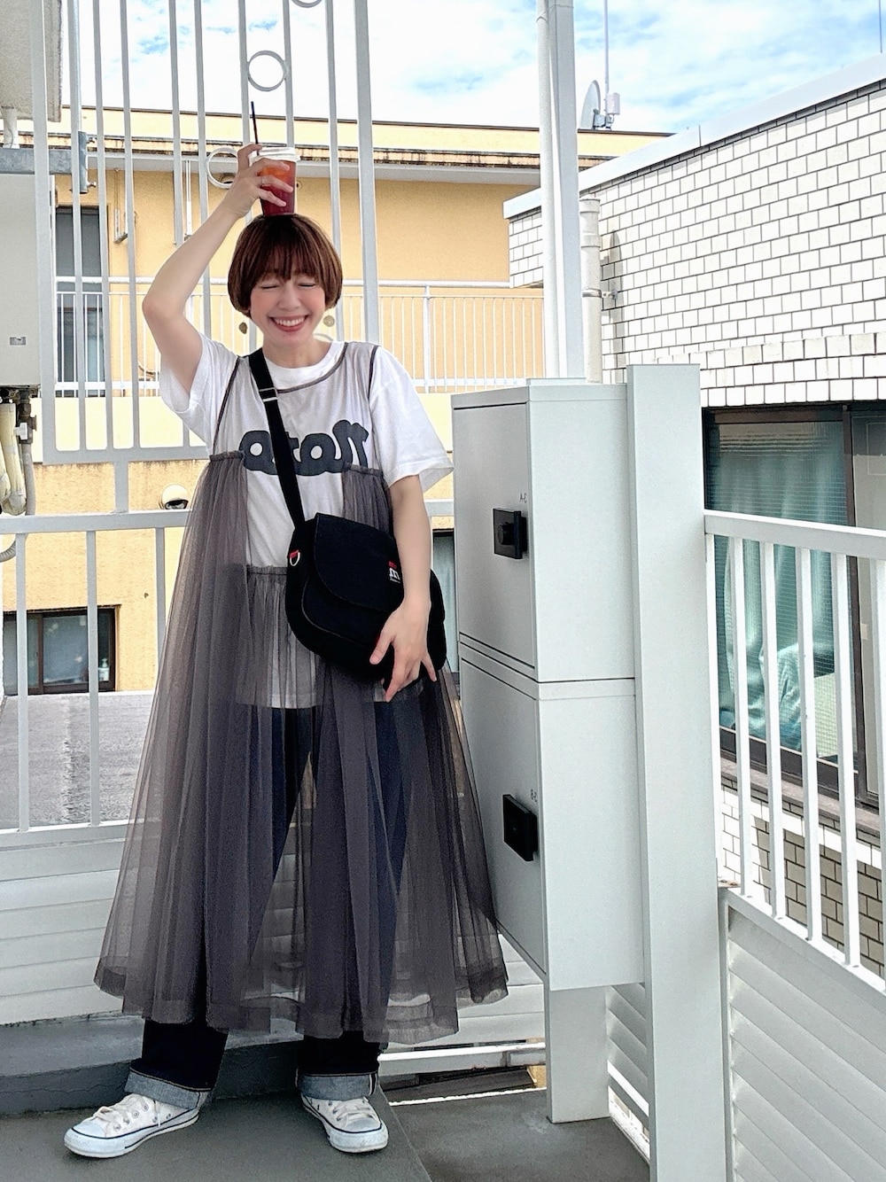 おはようございます! Tシャツ&デニム。 シンプルコーデにシアーワンピースを重ねてみました。 大好きなハルちゃんが前回のコーデでシアーシャツはこの時期暑いと投稿文に書いてありましたが、 めっちゃわかるーと思いました。 気温がそこまで高くない時のコーデでしたが、暑かったです笑 アイスコーヒーなのになんか酔っ払い風🤣 今週は帰省して、実家に新しい照明を付けました💡✨✨ 前回お話ししたGOODDEALの元販売員さんだったホーリー(WEARもしてた!)のところで購入しました。 ホーリーは販売員を辞めた後は旦那様とお二人で旦那様の経営している電気屋さんで働いています。 お手伝いとかではなく、きちんと電気系の資格も取得して本気でやっていらっしゃるからすごい‼️ 新しく照明を扱うことになった話から「じゃあ、ウチの実家に」と話が進み、 前の現場からだと3時間くらいはかかる場所なのに快く来てくれました✨ 旦那様とは今回2回目。 お仕事してるお顔は初めてみましたが、 職人!という感じだけでなく、人辺りもソフトで細やか。 ホーリーは側に立って使う工具をテキパキと渡しています。 すっかり職人になってました✨✨ あっという間に素敵な照明を和室と寝室に付けてもらいました。 両親も大喜び✨✨ そのあとは2人を連れて市内観光と夕飯を一緒に食べました。 ほんと2人は仲良しで、仕事も一緒、趣味も一緒、美容室に行くのも一緒、トイレに行くタイミングまで一緒🤣 仲睦まじいとはこのことか‼️と思うほどお互い大好きなんです✨✨ そういう空気を感じ取るとこちらまで温かい気持ちになってきます🥰 この出会いに感謝だなぁ✨と思いました。 GOODDEALのご縁は枝葉を伸ばして続いています🥰 素敵なご縁をありがとう✨✨