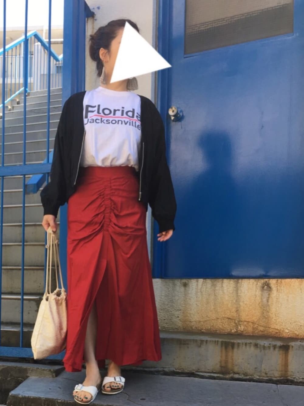 お呼ばれ用に購入した赤スカートの 着回しーーー٩( ᐛ )و
