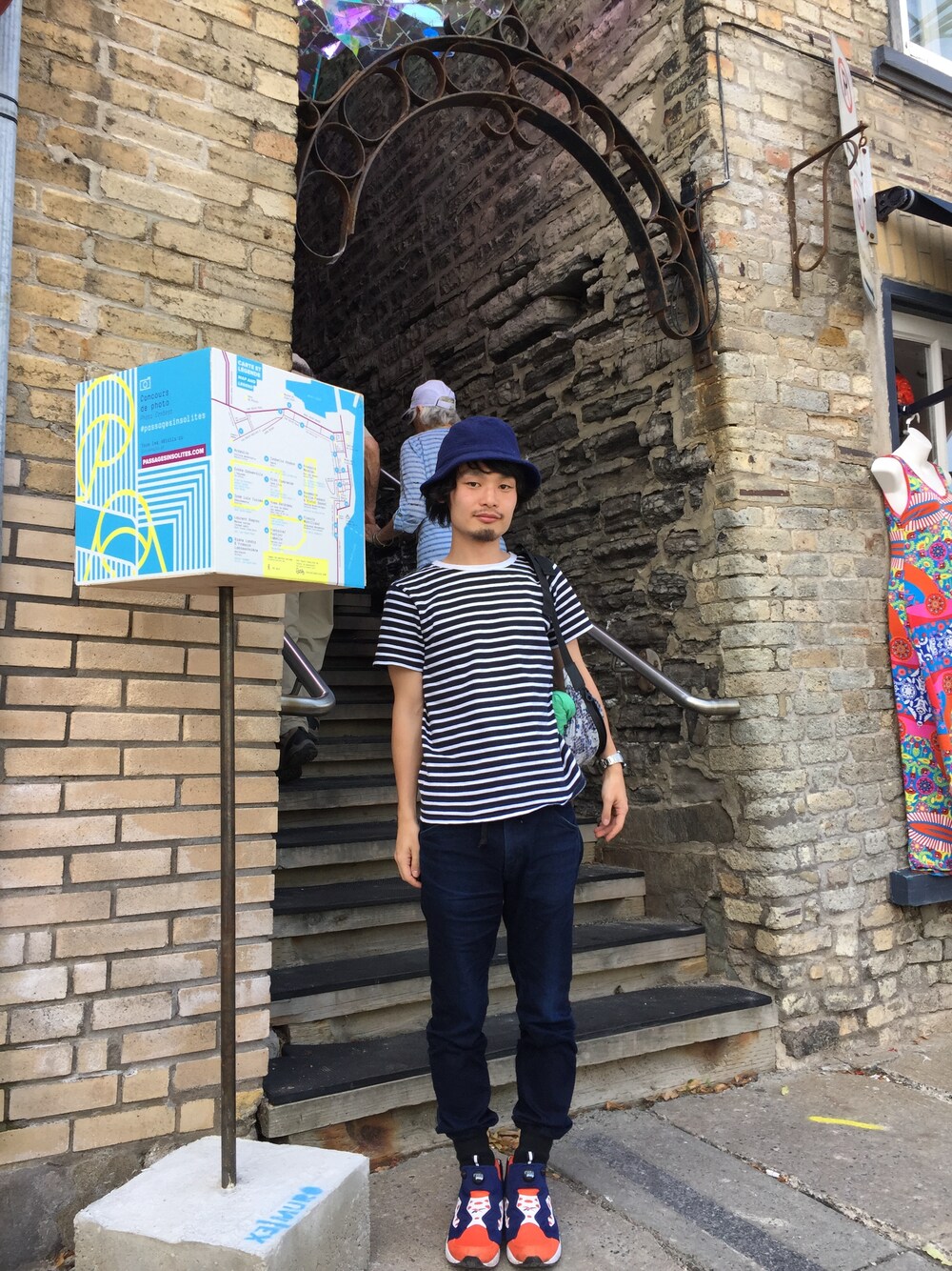【STREET SNAP/プチ・シャンプラン地区/カナダ/7月号】 いとこに会いに妹と旅行中という日本人の彼。 全体の色味を統一して、ポンプフューリーで外す日本人ならではの感性は、 まさに”C’est chic.” ippei/26歳/物流/千葉県在住