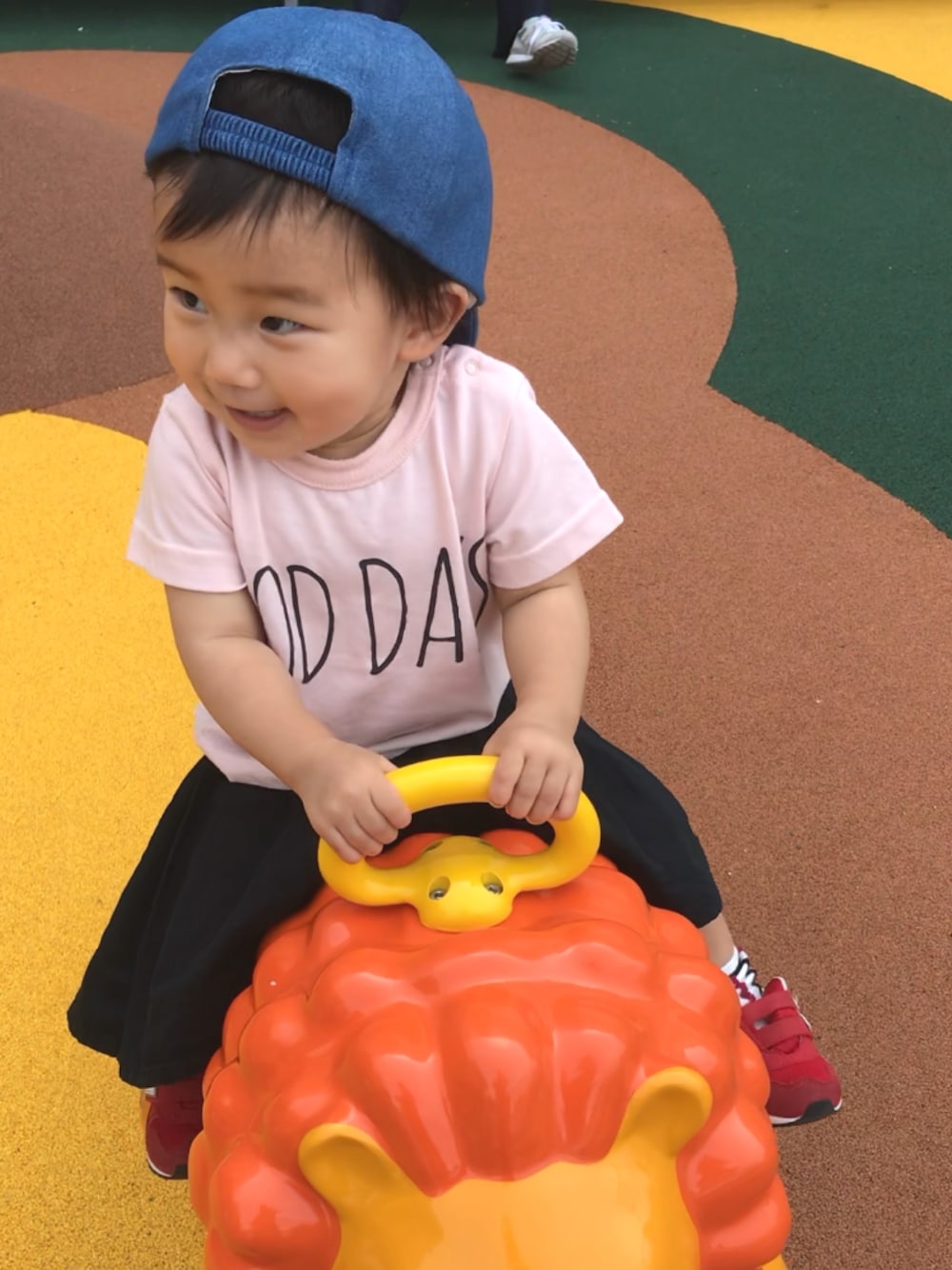 お久しぶりです♫ キャップ被ると男の子🤣 このライオンに30分くらい乗ってました💦