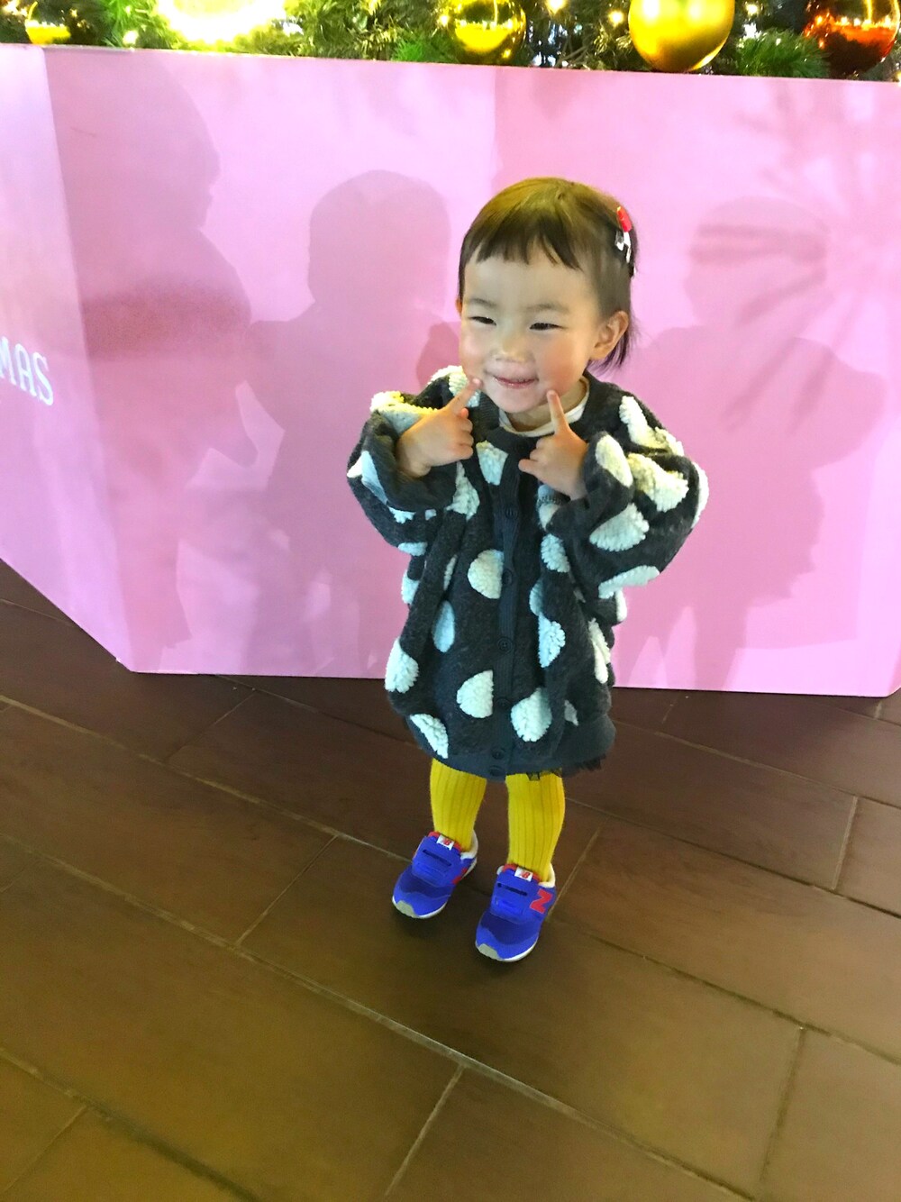 イルミネーションが綺麗な時期になったねー♫ ふーちゃんは、 「 キラキラお星しゃま〜⭐︎」 と、大興奮😊 今日のコーデも、可愛いおニューアウター💕 サイズは、100しかなくて、でも一目惚れしたから買っちゃった‼️ オーバーサイズで可愛い😍 お気に入りになりました❤️ ニューバランスの靴は、お下がり♫ あお〜が大好きなふーちゃんは、最近この靴ばかり😓 あっ、気づいたと思いますが、 ふーちゃん初めてのカット致しました(笑) うっすい少ない貴重な髪の毛を、惜しげも無くパツっと、ワンカットで✂︎ ワンカットで切れる前髪(笑) 切った髪の毛は、筆にも出来ない長さや量だから、捨てました🤣