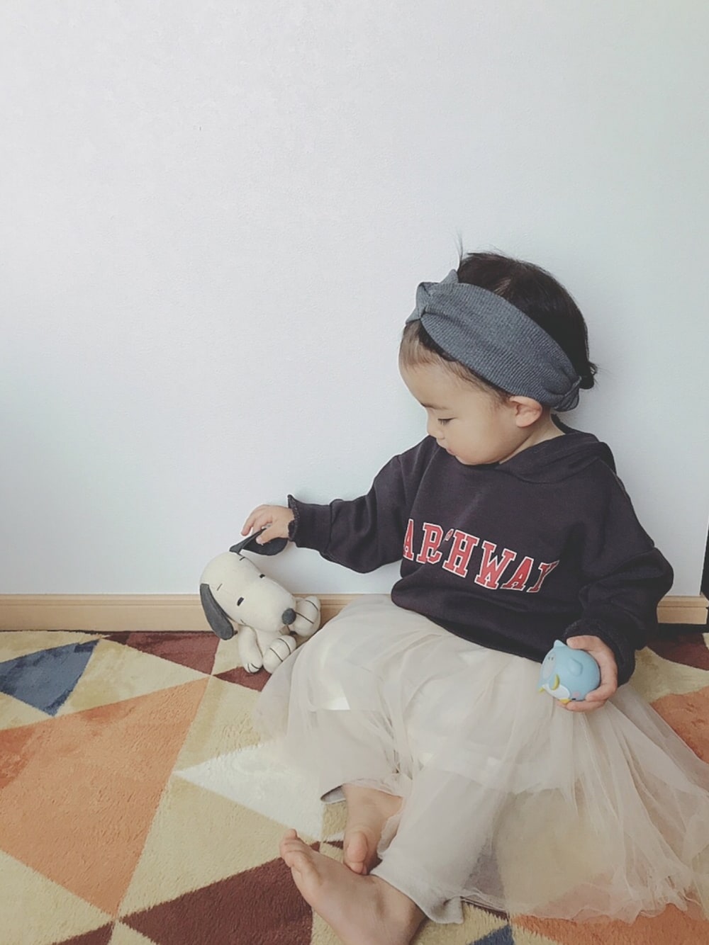 今日のふーちゃんコーデ♫ 淡いパステルピンクのチュールスカート🌸 パーカーで、スッキリ着てみたよ❤️ 最近は、ミッキー大好きふーちゃん❤️ またディズニー連れて行きたいなぁ✨ あ、持ってるのはスヌーピーだけど笑笑
