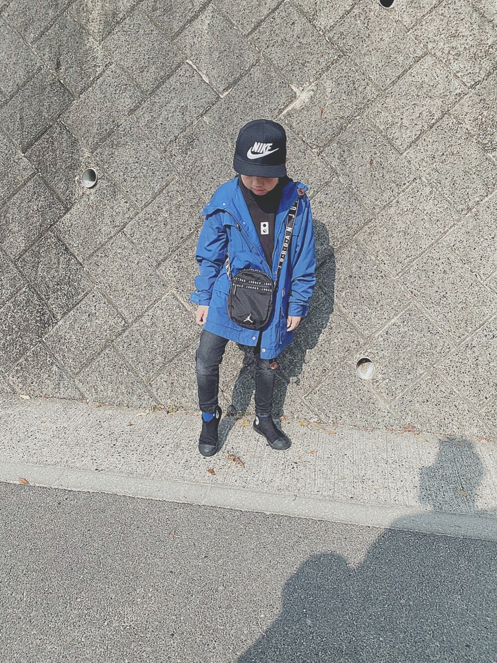 父ちゃんのアウターお下がり😊 大きくなりました✨