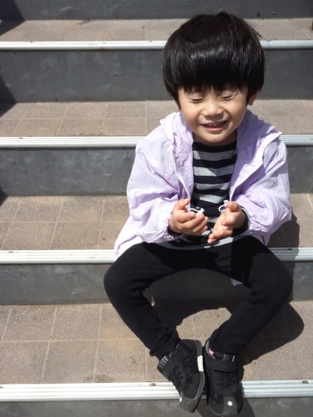 SLAPSLIPさんのナイロンパーカー 息子に選ばせたらパープルに♩ 春らしいカラー ブラック合わせで男の子でもカッコ可愛く 着られます! 見て頂いてありがとうございます𓃺𓈒𓏸 ig▷@iro.d.ori ※プロフからとべます➳ 4y ・・身長96㎝ ・・体重14.5㎏ パーカー→110㎝ Tシャツ→110㎝ レギンス→100㎝ 靴→17㎝