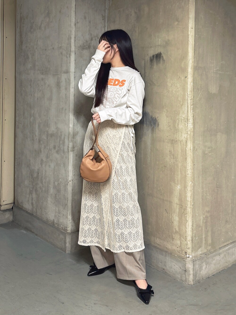 レースのラップスカートでガーリーに♡ バッグ👜は形がめちゃくちゃ可愛くてお気に入り〜!