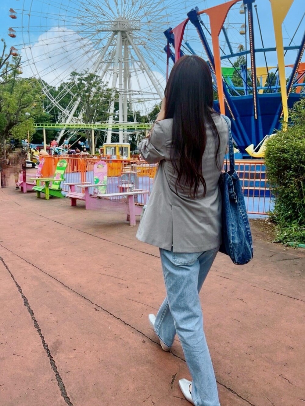 レトロな遊園地にワクワクした日☺️💗 上下UNIQLOだけど韓国っぽくなっていい感じ‼︎ JW ANDERSONとのコラボデニム👖 クラシカルな雰囲気で使いやすく脚長効果あって可愛いのでおすすめ! ig🚀:@iri13_168