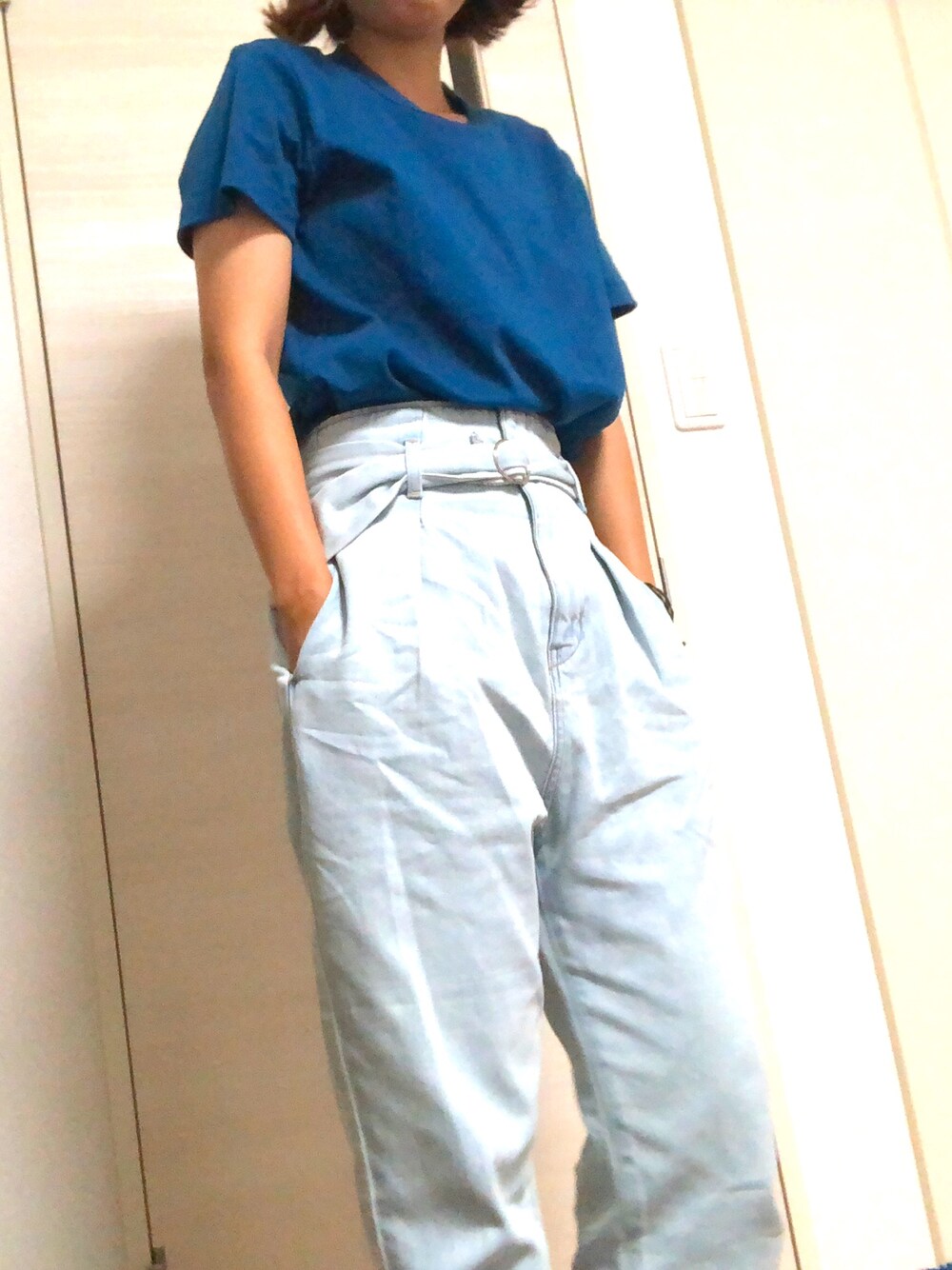 たかわちのデニムパンツ「デニムマムパンツ」を使ったコーディネート