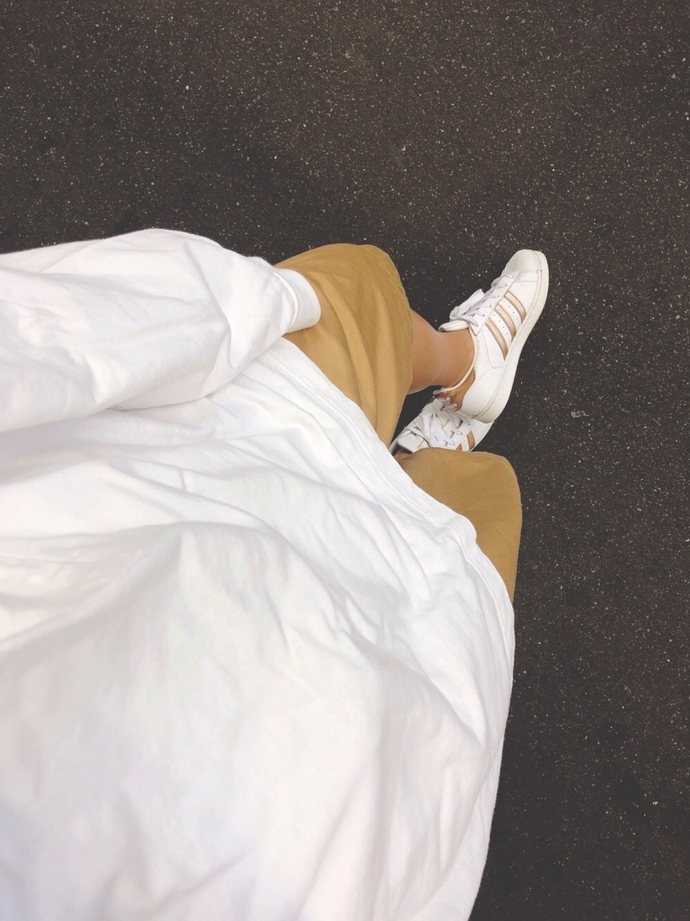 . . 全身写真を撮るのが苦手すぎる . 涼しくなってきたのでロンTハーフ×パンツが楽、というか好き . シンプルだけど色の統一感ある(はず) . 脚の日焼けしすぎと太すぎるのが気になる⚡️