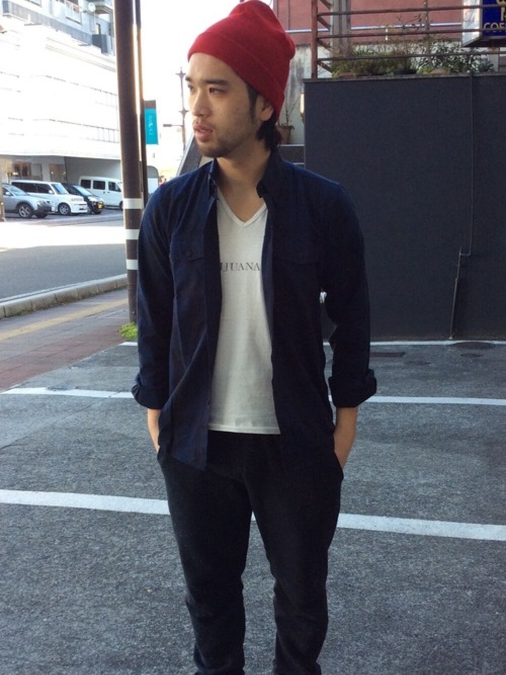 まだまだ寒い中で、、、 シャツコーディネート!!! ニット帽以外を暗めの色でまとめ、よりニット帽を目立たせる( ̄^ ̄)