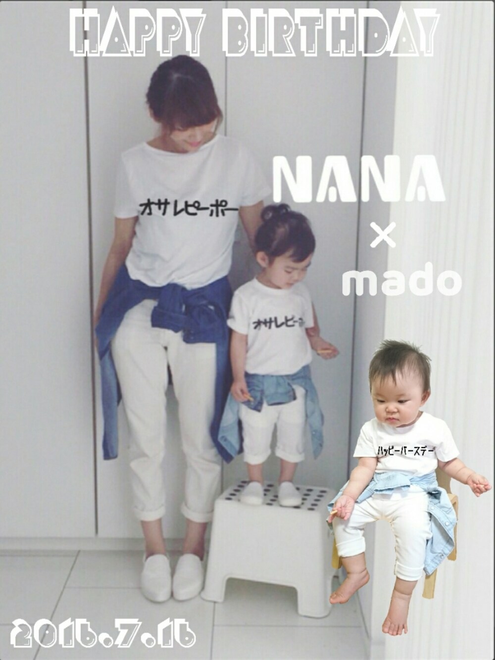 ご覧いただきありがとうございます♡ 本日二度目の投稿失礼します☆ 今日はオサレピーポーな❤NANA❤ちゃんのお誕生日。 二歳おめでとう~✨🎊🎂 ますますオサレな1年になりますように☺ これからもコーデやリンクコーデ、小窓劇場楽しみにしているよ~🍀 オサレなNANAちゃんとリンク出来そうなの、コレくらいしかなかったー💨 まだ靴持ってないから靴下履かせようとも思ったけど暑いし断念(笑) どんな加工にしようかも相当迷ったけど、ママも載ってるしスタイリッシュな感じを残したかったからこのままいこうと🎵 でもmadoが載った事でぶち壊しかな😂 ほんといつもお洒落で小窓劇場も超面白くて近くに従兄弟いて← 素敵すぎる✨ また面白いイベントやってね~🙌🌠 本当におめでとう🎁❗ 小窓IPPON GP!!!のネタこちらにも載せました~。 もうストックないです(笑) ここまでお読みいただきありがとうございました❤