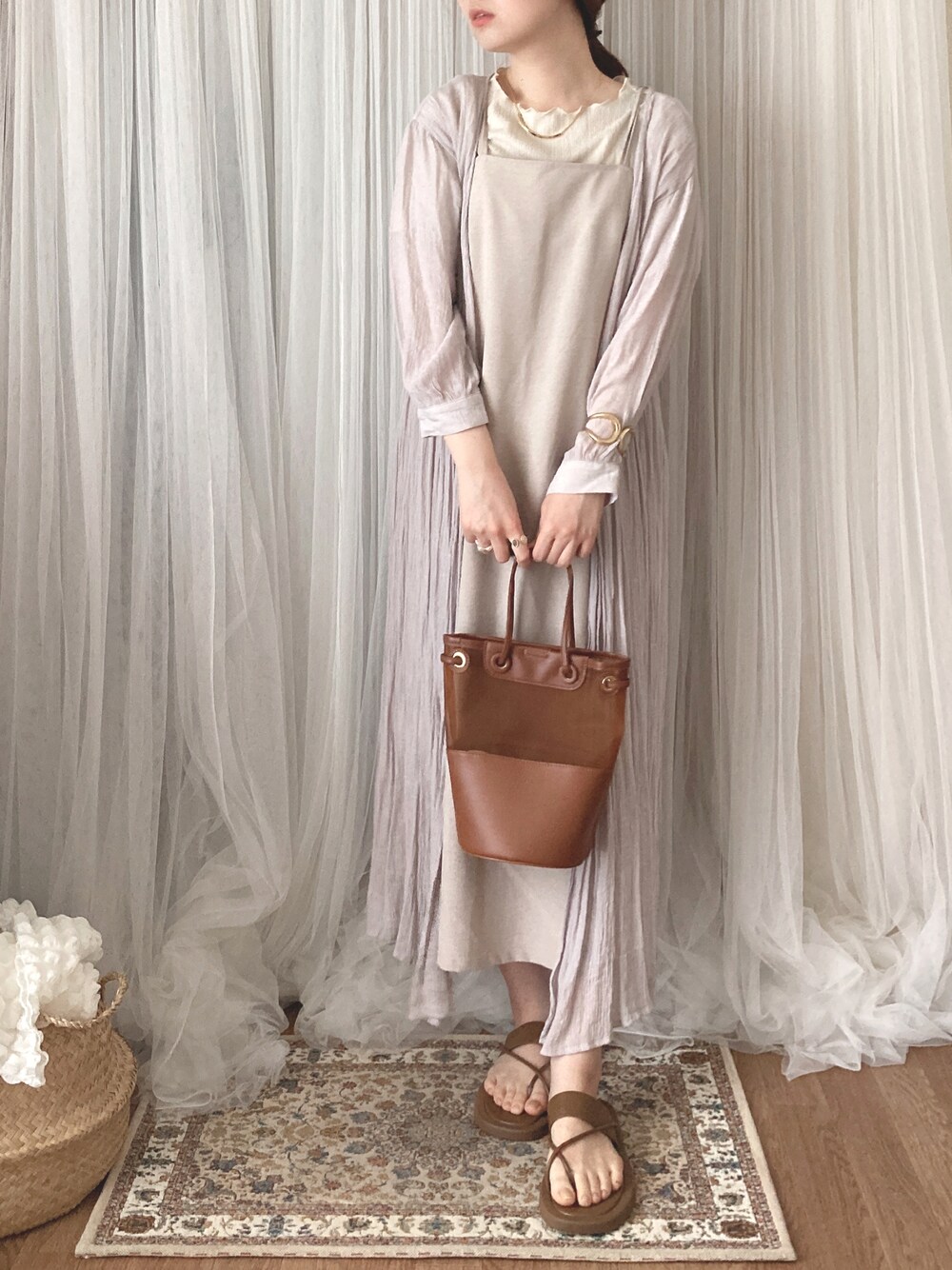 全体的に淡いろ🫧🫧🫧 紫外線対策と冷房対策にfifthのワンピースを羽織りました☺️