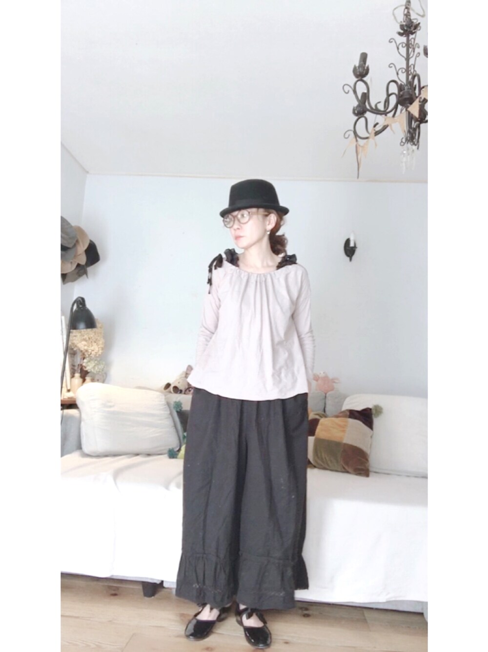 こんばんは☺︎ ご覧くださりありがとうございます♪ 昨日、ワクチン摂取したので、大事をとって家でマッタリしています。 リラックススタイルでコーディネート♡