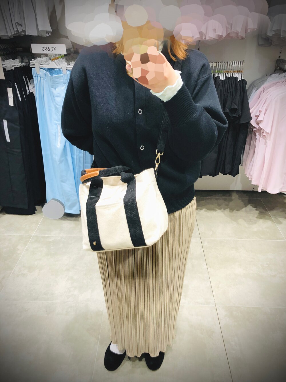 後ろに買ったもの隠してるから変なポーズになりました笑 あんまり見えないけど、中に着たシアートップスのミントグリーンがかわいくてお気に入りです✨