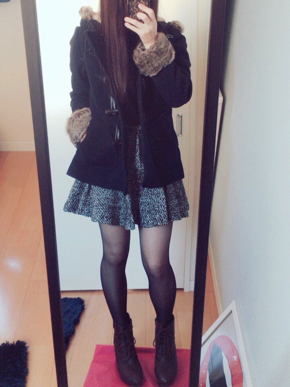 今日は寒く、風邪も強いのでようやくダッフルコートを解禁しました イブだし少し可愛い格好をしようとしたつもりでしたが、相変わらず色合いが暗いですねぇ...