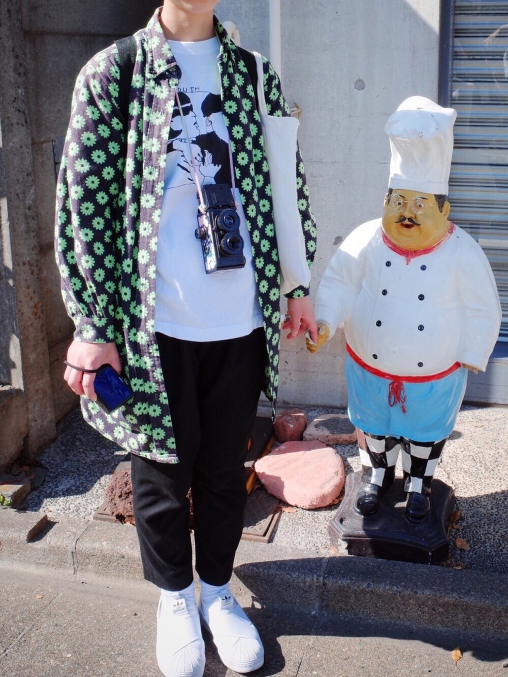 東京散歩したとき。 この古着ワンピ、お気に入りすぎて色褪せてきた。