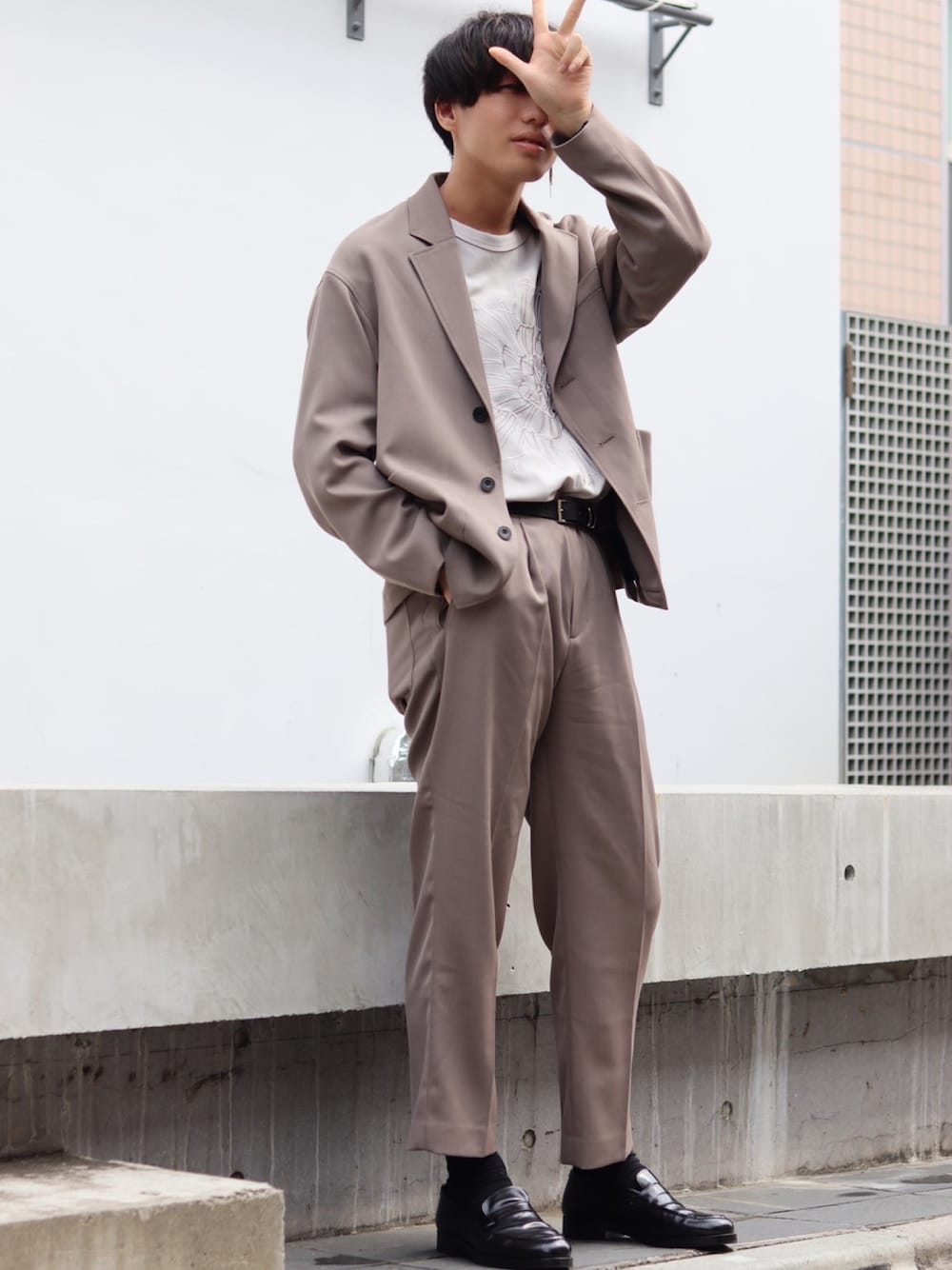 セットアップですっ! Instagramで息してるので覗いてくれたら嬉しいです仲良くしてください! ウール混合のおかげで春秋冬とインナー変えて3シーズンは使ってもらえちゃうこちらのセットアップめちゃくちゃおすすめです何がいいって3シーズン使えるのが圧倒的コスパです
