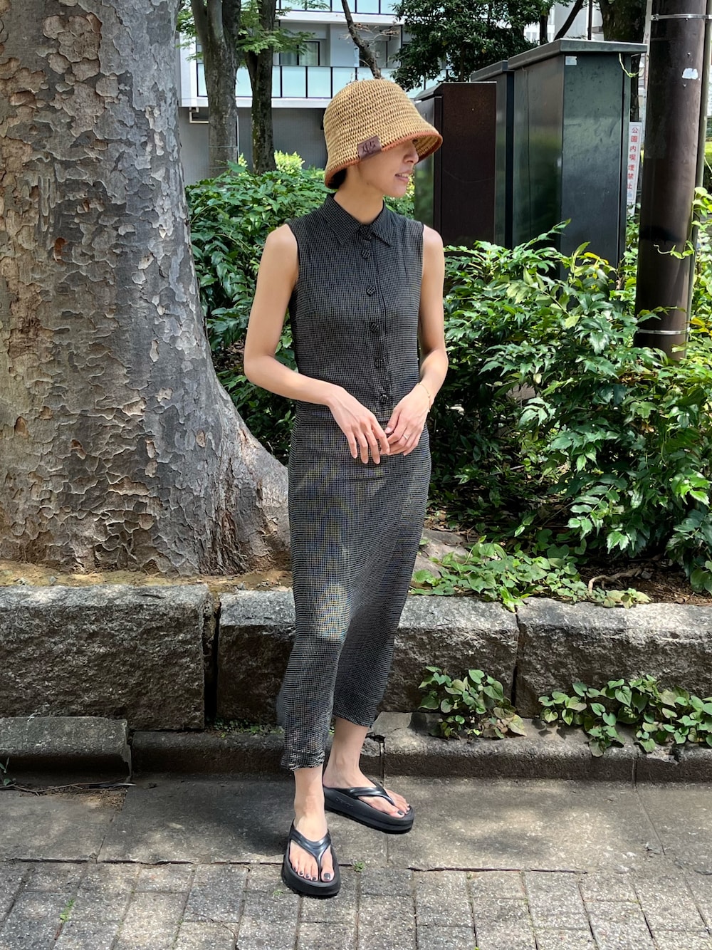 天然素材風ニットバケット🌿 フロントに着いている合皮のエンボスワッペンがポイント💡 通気性がよく、ネットに入れて洗濯機洗いも可能です◎ ワンピースに合わせてみましたが、 ジーンズなどと合わせて、きれいめカジュアルなスタイルにもおすすめ🌿✨