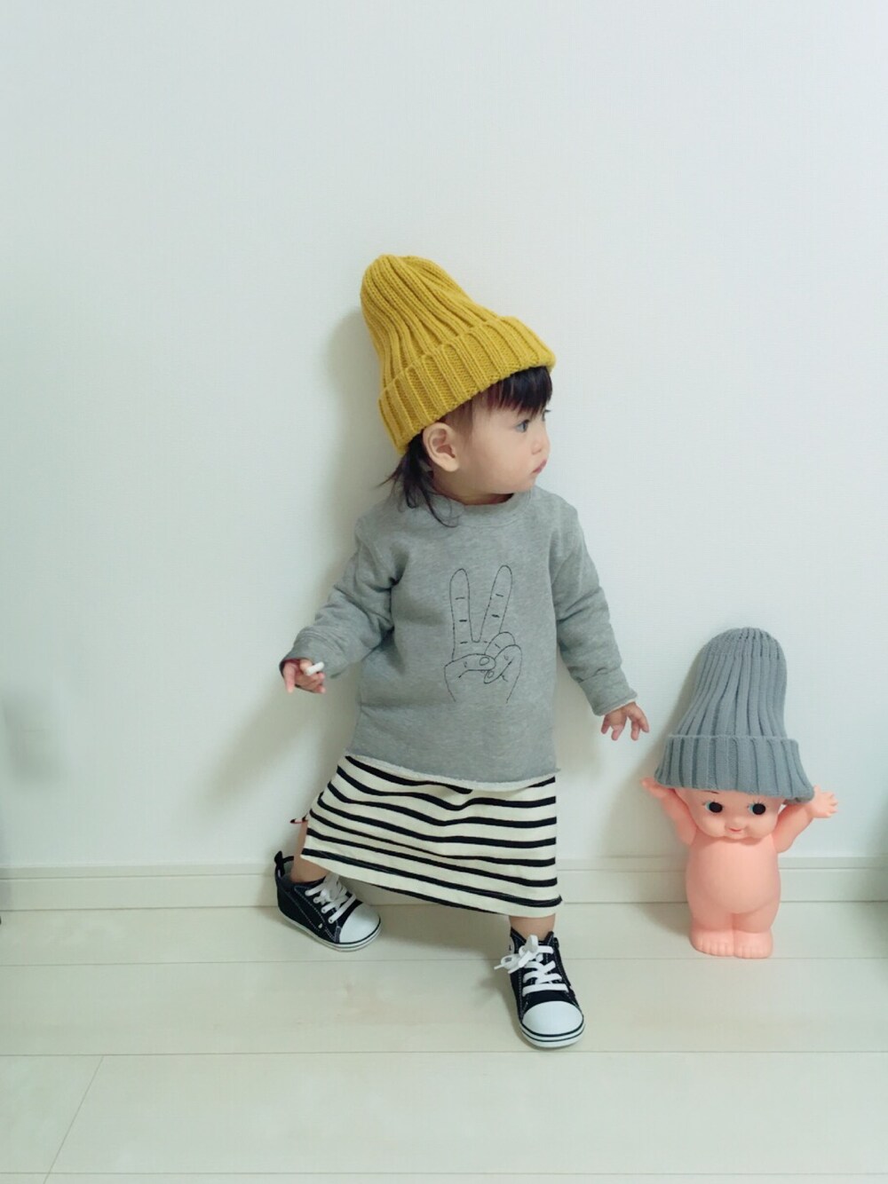 ピースぴーすピース✌︎ キューピーとりあえずニット帽だけでも☺︎笑。 いつも見て下さりありがとうございます♡
