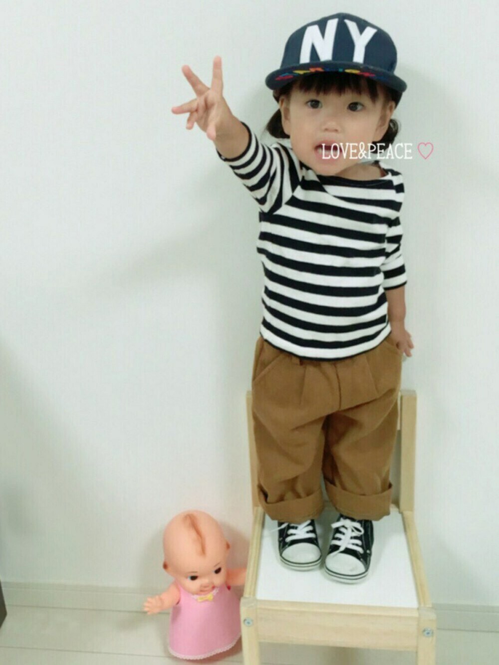 りんかちゃん&ふうちゃん&さおりん1000followerおめでとう♡ キャメル✖︎ボーダーのプチリンクコーデでお祝い♩ いつも可愛い姉妹コーデに癒される〜😊 これからも楽しみにしてるね♡ そして LOVE&PEACEプロジェクトに参加させてください☺︎ 中途半端なピースだけど…✌︎ いつも見て下さりありがとうございます♡