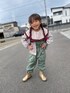 👷「おいおい若ぇのもっと踏ん張れよ笑」 ドカタStyleを女の子っぽく組んだら こうなりました🙋♀️笑 いつもいいね、お気に入り、 ありがとうございます☺️✨ 素敵なフォルダイン等 感謝しております🥲❤️ 【BREEZE】 2wayサロペット size 110 color カーキ このサロペ真ん中のとこでボタンで止まってて、サロペとして使えるし外してビスチェ(合ってる?笑)としてもいけるしカーゴパンツ単体でもいける何度もコスパ良しでした🙋♀️ 難点をあげるとすればボタンの所が外すのは簡単なんですけど付けるのにコツが要ります😘 リボンを三つ編みに絡めておしゃれな感じにしようと相方が頑張ってました( 'ω' )👍 それでは皆様良き日を お過ごし下さい🐧✨
