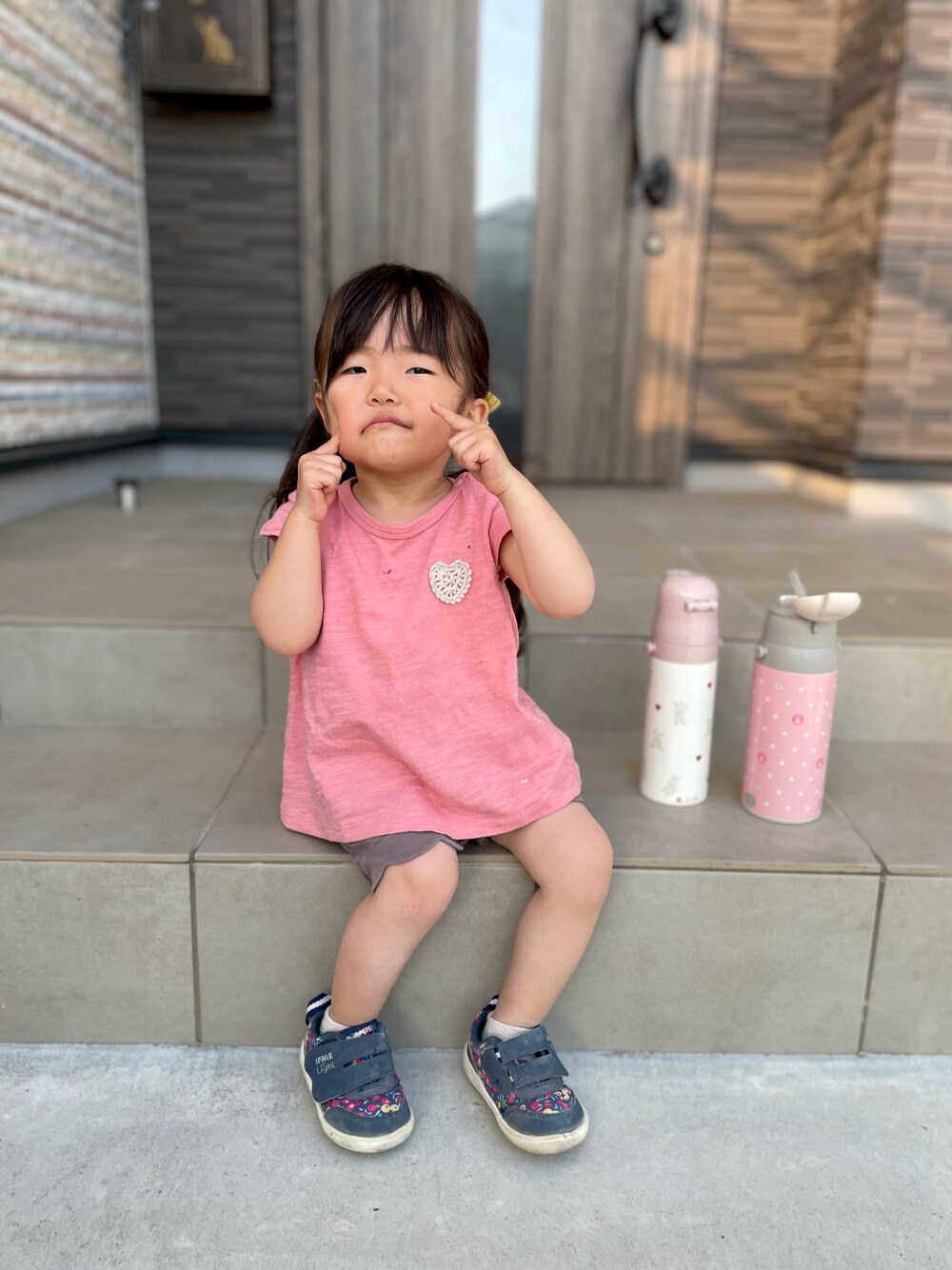 保育園から帰ってきて 駐車場でチョークで遊んでた時に パシャリんこ📸 いっぱい線路描いてました🤣🤣 おはようございます しいちゃです👧♪ 【petit main】 編みモチーフTシャツ size 90 color ピンク アイスとか色々あったんですけど しいちゃ的にハートが良いらしく ピンクを購入♪ ハートが立体的になってて 可愛いですーヽ(○´3`)ノ ♪ ちょっと丈が長めなのもツボ🏺 それでは皆様良き日を お過ごし下さいー♪